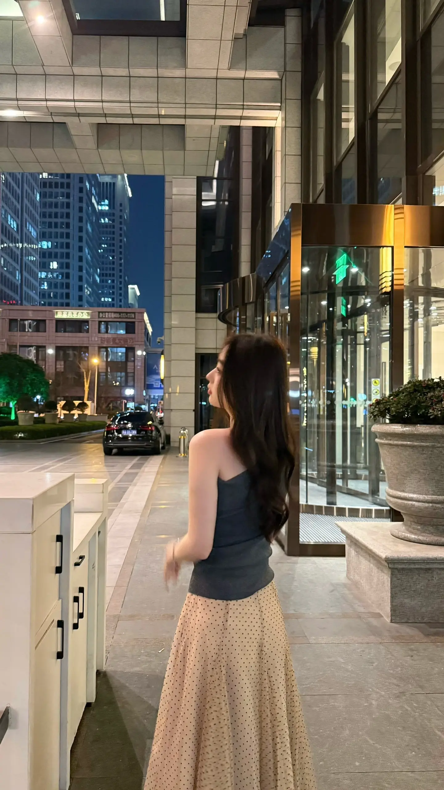裸色斜肩裙,真的是清爽又不费力的好看。突然很想试试不靠多余装饰、只靠剪裁说