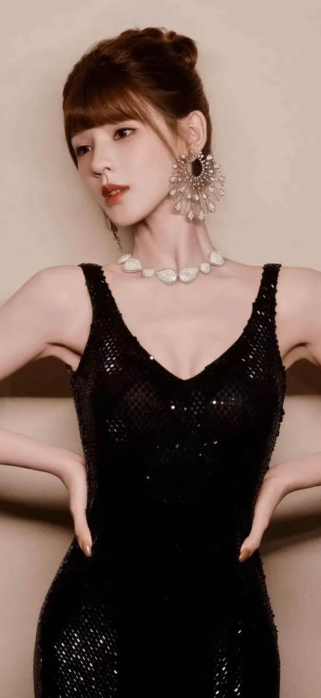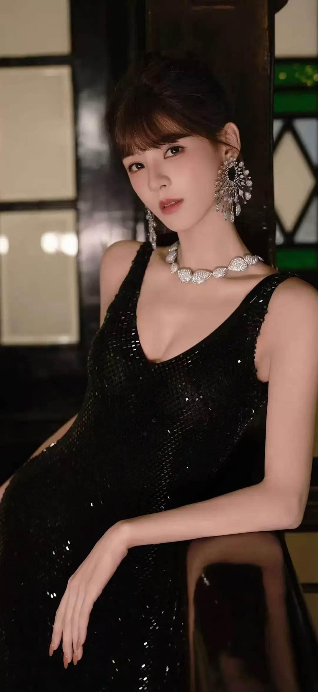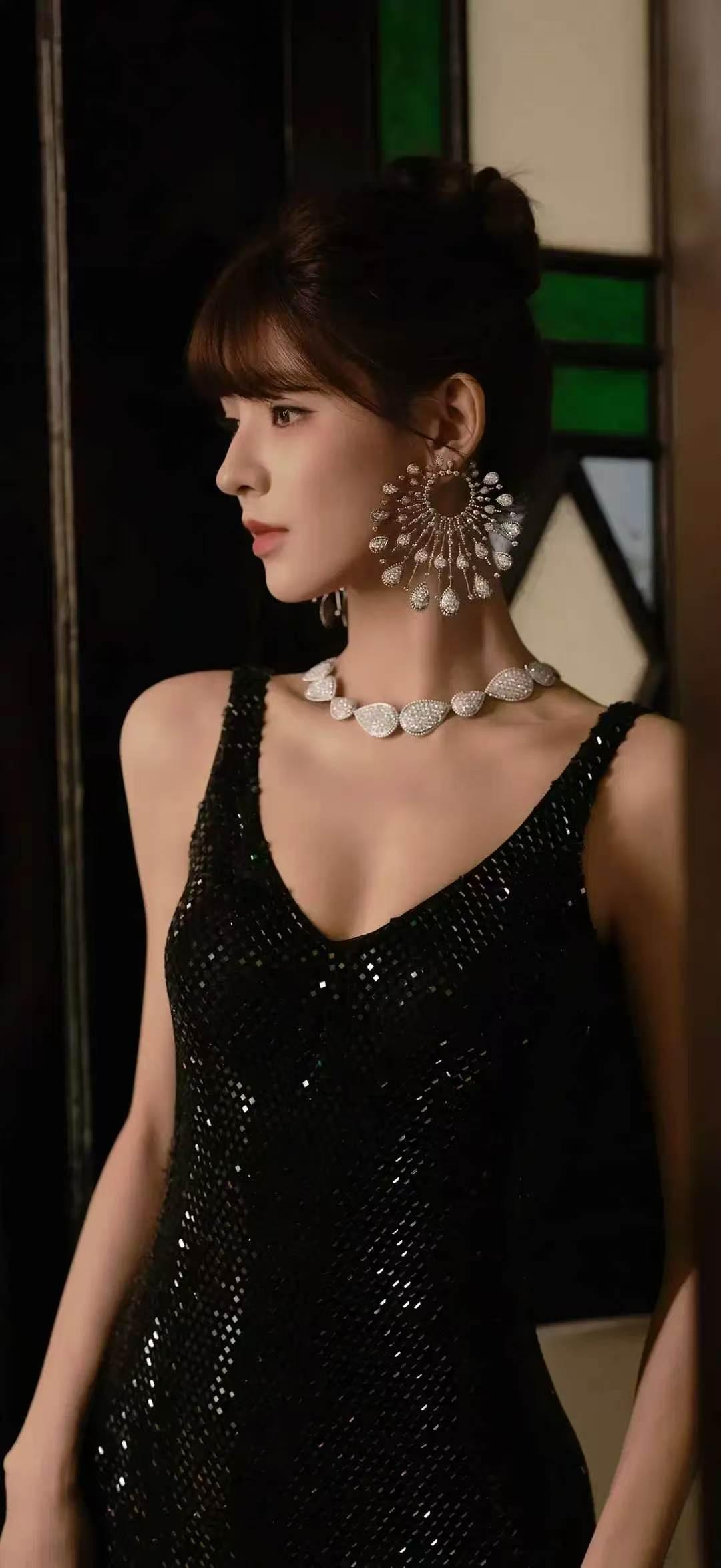 美女壁纸~张予曦,暗夜鎏光,璀璨登场。一袭黑裙勾勒曼妙身姿,钻石珠宝点缀清冷气质,于复古光影间,尽显优雅与矜贵