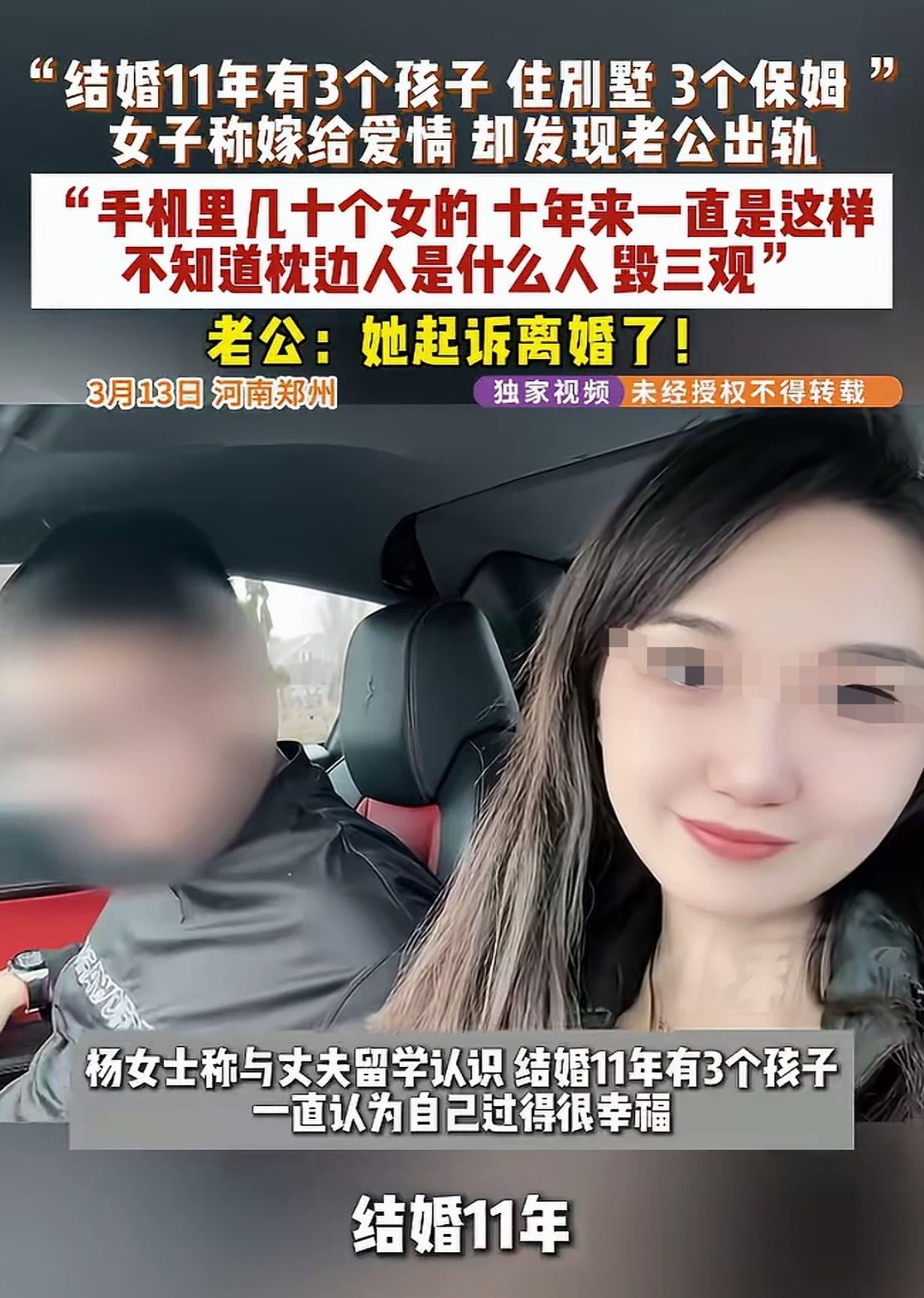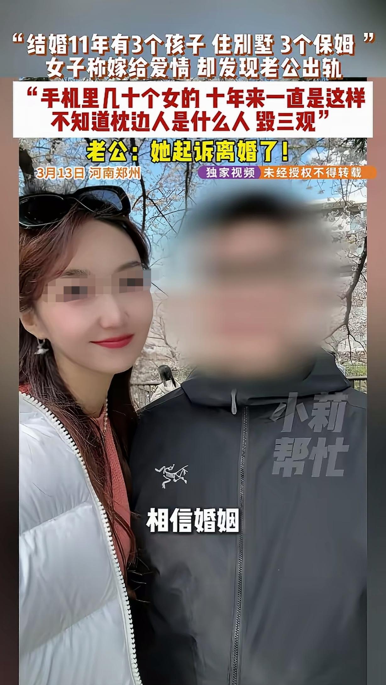 “细思极恐的枕边人!”河南郑州,一女子留学时,跟丈夫相识相爱,2人结婚11年,生了3娃,住着大别墅,雇了3保姆,她以为嫁给了爱情,却发现丈夫手机里有几十个女人,都有经济往来,开房记录,不雅视频。丈夫花心十几年,被发现后,还恼羞成怒,暴打女子20分钟,导致女子脑袋上的伤口再有3厘米就没命了,丈夫说所有男人都这么玩!女子崩溃:他的好友和员工都知道,就我跟傻子一样被蒙在鼓里。女子带走孩子,愤怒的起诉离婚! 杨女士怎么也没想到,自己留学时一眼相中的男人,会在结婚11年后把她拖进深渊。 他们刚认识那会儿,男人温柔体贴,追了她整整两年才打动她。 结婚后,杨女士陆续生了3个孩子,在家生儿育女,相夫教子。 他们一家住着大别墅,雇了3个保姆,在外人眼里,这就是人人羡慕的幸福家庭。 杨女士也一直以为自己嫁给了爱情,每天围着孩子和丈夫转,把家里打理得井井有条。 可现实却像一记重锤,狠狠砸碎了她的美梦。 偶然间,杨女士翻看了丈夫的手机,这一看,她差点晕过去。 手机里几十个女人的联系方式,每一条聊天记录都带着暧昧,还有密密麻麻的经济往来记录。 更过分的是,开房记录像一把把刀子,扎得她喘不过气,甚至还有丈夫和别的女人的不雅视频。 原来,丈夫花心已经十几年了,她一直被蒙在鼓里。 杨女士拿着手机质问丈夫,没想到丈夫不仅没有一丝愧疚,反而恼羞成怒。 他冲过来,对着杨女士的脸“啪啪”就是两巴掌,接着掐住她的脖子,把她从客厅拖到4楼。 杨女士拼命挣扎,可根本挣脱不了丈夫的拳打脚踢。 就在她觉得自己快要没命的时候,女儿用电话手表拨打了110。警察及时赶到,才把她从丈夫的暴 行中解救出来。 丈夫的殴打持续了整整20分钟,导致她脑袋上的伤口离致命点只有3厘米。 而丈夫却轻描淡写地说:“所有男人都这么玩!”那一刻,杨女士彻底崩溃了,她怎么也没想到,自己爱了这么多年的男人,竟然如此不堪。 更让她心寒的是,丈夫的好友和员工都知道他的丑事,只有她像个傻子一样被蒙在鼓里。 这件事对女儿的伤害也特别大。从那以后,女儿每天晚上睡觉都会在梦中惊醒。 每次回家,女儿第一件事就是问杨女士门锁好了没有,还担心爸爸会不会找到她们。 甚至,女儿还问她:“妈妈,我长大了一定要结婚吗?”看着女儿惊恐的眼神,杨女士心如刀绞。 如今,杨女士已经带着孩子离开了那个家,她愤怒地起诉离婚,一定要为自己和孩子讨回一个公道。 她知道,未来的路会很难走,但为了孩子,她必须坚强起来,重新开始新的生活。 有人说,我觉得没必要去离婚,如果他还很爱孩子很爱这个家。如果离了婚,再去找一个,有可能你过得也会很累,因为有小孩了你不可能放下孩子的抚养权。有能力的人不会给别人养小孩,没能力的人你跟他一起去拼搏,说不定还没有现在过的安逸。 这个问题几千年来古今中外从没断过,雄性动物的本性,不过人类要受法律和道德约束。 有人觉得杨女士不该离婚,认为再找可能更累,还担心孩子抚养权问题。 但这种想法太片面。婚姻的基础是忠诚与尊重,杨女士丈夫花心十几年,被发现后还暴力相向,这已经彻底破坏了婚姻的根基。 孩子成长需要健康的环境,长期生活在父亲背叛、家 暴的阴影下,对心理伤害极大。 杨女士如果继续隐忍,不仅自己痛苦,孩子也难有好的未来。 而且,有能力的人未必不会接纳孩子,真心相爱的两人会共同承担责任。 根据《民法典》第1079条,夫妻一方要求离婚的,可以由有关组织进行调解或者直接向法院提起离婚诉讼。 实施家庭暴力或者虐待、遗弃家庭成员的,调解无效的,应当准予离婚。 本案中,杨女士丈夫存在长期出轨及殴打行为,严重伤害夫妻感情,杨女士起诉离婚,法院应依法判决准予离婚,以维护其合法权益。 对此,你怎么看?