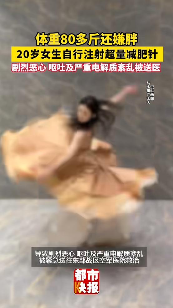 “悲剧还是发生了!”近日,江苏南京,一女子是舞蹈生,因为春节期间体重涨到80多斤,为了在演出前快速瘦身,她便注射了超量减肥针,结果导致自己剧烈恶心呕吐,并且严重电解质紊乱,最后被送往医院紧急救治!网友:这么瘦还减? 提起减肥,现在很多年轻人都陷入了一个误区,总觉得越瘦越好看,甚至不惜用伤害自己的方式,去追求所谓的“完美身材”。   就在最近,江苏南京一名20岁的舞蹈生,就因为这份过度的身材执念,差点酿成无法挽回的悲剧。   这个女生叫小优,从小学习舞蹈,对自己的身材要求一直特别高。   为了一直保持纤细的身材,小优平时除了高强度的舞蹈训练,还会刻意控制饮食,甚至长期关注各种减肥技巧和产品,就怕自己的体重超标,影响舞蹈表现。   前段时间,她发现很多人都在推荐一款叫替尔泊肽注射液的“减肥神针”,大家都说这款药不用节食、不用运动,打一针就能快速瘦下来,而且效果特别明显。   小优本身就对体重特别敏感,看到这样的推荐,根本没多想,也没有去咨询医生,就直接在网上下了单。   小优买到药之后,就按照网上说的方法开始注射,一开始剂量比较小,体重确实有明显下降,很快就维持在了七十多斤,这让她更加坚信这款药的效果。   春节期间,家里人团聚,少不了各种美食,小优没忍住,稍微放松了一点饮食,等春节过完,她一称重,发现自己的体重涨到了80多斤。   这80多斤的体重,放在普通人身上,已经是非常瘦的了,可小优却特别焦虑,因为她很快就要参加一场重要的演出,担心自己的体重会影响舞台效果,怕被老师批评,也怕不如其他同学纤细。   急于快速瘦回去的小优,脑子一热,就决定加大注射剂量,她根本没考虑过过量注射会有什么后果,只想着尽快看到效果。   按照医生的建议,这款药的常规起始剂量是每周2.5毫克,慢慢递增,可小优这一次,一次性就注射了10到15毫克,相当于正常剂量的好几倍。   注射完还不到一个小时,小优就开始出现不舒服的症状,一开始只是觉得恶心、浑身发软,没什么力气,她以为是刚开始加大剂量的正常反应,就没告诉家人,想着忍一忍就过去了。   可情况并没有好转,反而越来越严重,恶心的感觉越来越强烈,紧接着就开始剧烈呕吐,吐得停不下来,到最后连水都喝不进去,还伴随着头晕眼花,站都站不稳,整个人脸色苍白,精神萎靡得厉害。   家人发现她不对劲的时候,小优已经快站不住了,吓得赶紧放下手里的事,连夜把她送到了东部战区空军医院的急诊科。   接诊的张杰医生说,小优送到医院的时候,状态已经非常危险,呕吐次数多到记不清,身体严重脱水,经过检查,确诊是因为过量注射替尔泊肽,引发了严重的电解质紊乱,还有胃肠道不良反应。   这款被大家吹得神乎其神的“减肥神针”,其实是一款治疗2型糖尿病的处方药,2024年才在我国获批上市,今年年初才纳入医保,初衷是帮助糖尿病患者控制血糖,减重只是它的一个副作用。   更让人无奈的是,这款本该凭处方才能购买的药,在网上却几乎是零门槛就能买到。   虽然每个商品页面都标注着“处方药需凭处方购买”的提示,但实际操作起来,只要随便填些信息,就能顺利下单。   张杰医生还特意强调,替尔泊肽的副作用本身就比其他同类药物大,除了胃肠道不适,还可能引发胰腺炎、急性肾损伤,甚至增加甲状腺髓样癌的风险。   而且它有明确的适用人群,只适合严重肥胖或者有代谢问题的人,像小优这样80多斤的体重,完全不需要用这种药。   万幸的是,小优送医及时,经过医生的紧急治疗和后续的调理,她的症状慢慢得到了缓解,身体也在一点点恢复。   小优的事情并不是个例,现在很多年轻人,尤其是爱美的女生,都被“以瘦为美”的单一审美绑架,对自己的体重过分苛刻,总觉得只有瘦到极致才好看。   可大家都忽略了,健康永远比身材重要,体重只是一个数字,不能代表什么,用伤害身体的方式去追求所谓的“完美身材”,到最后只会得不偿失。   减肥没有捷径,更不能盲目跟风用处方药,不管是减肥还是做其他事情,都要以健康为前提,毕竟只有拥有健康的身体,才能去追求自己喜欢的一切。