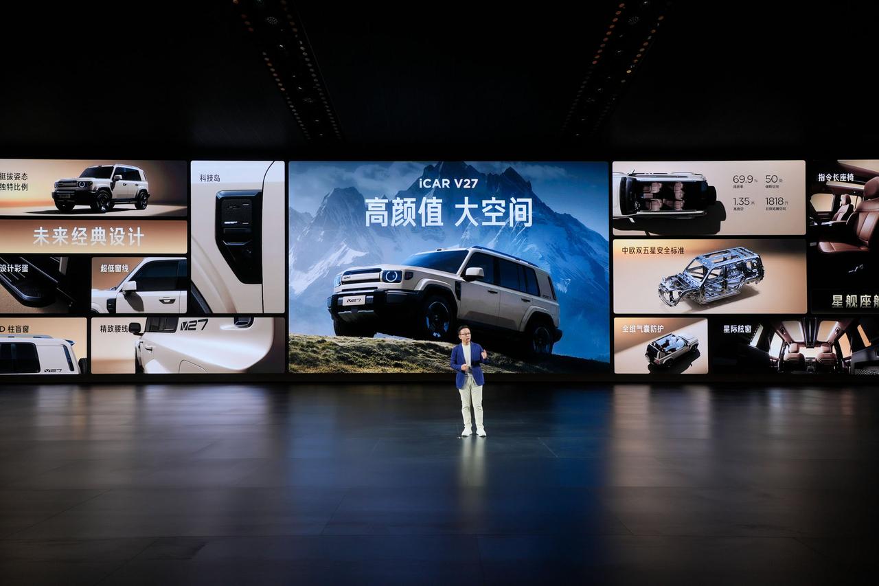 3月13日,iCAR V27正式上市,推出三款配置,售价区间16.98-19.68万元。新车定位“家庭新硬派”,以5米级方盒子造型和通透座舱空间为基底,融入硬派设计语言。 动力上搭载1.5T高效增程系统,配合34.3kWh电池,纯电续航超200公里,综合续航可达1200公里以上,四驱版本零百加速进入5秒区间。底盘采用MRC磁霸悬架,提供8种以上驾驶模式,并已通过中汽研L3级越野认证。 智能化方面,iCAR V27搭载基于地平线征程6P芯片的辅助驾驶系统,支持不依赖高精地图的城市与高速领航功能。车内配备“星际舷窗”双天幕与灵活座椅布局,后排放倒后可形成近1.8立方米纯平空间。【来自懂车帝车友圈】
