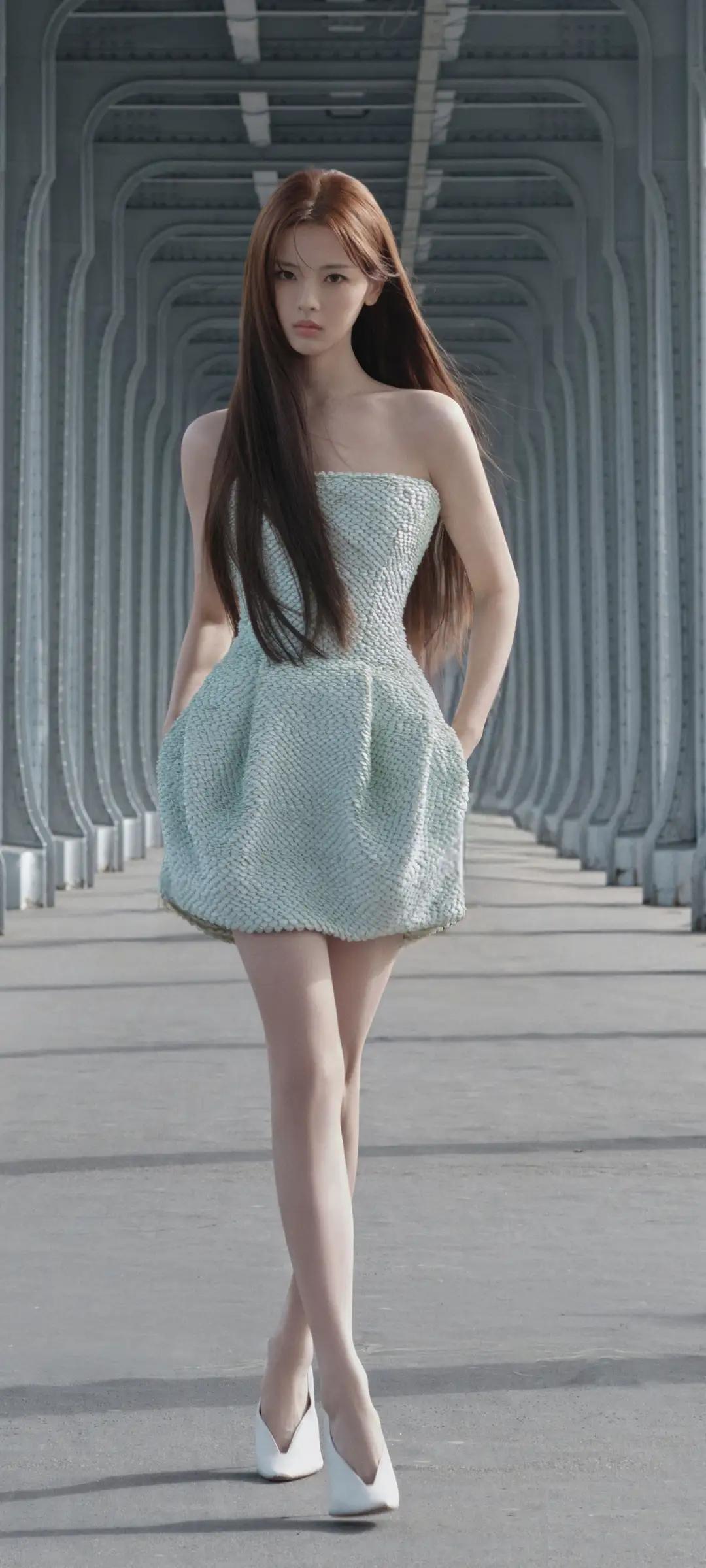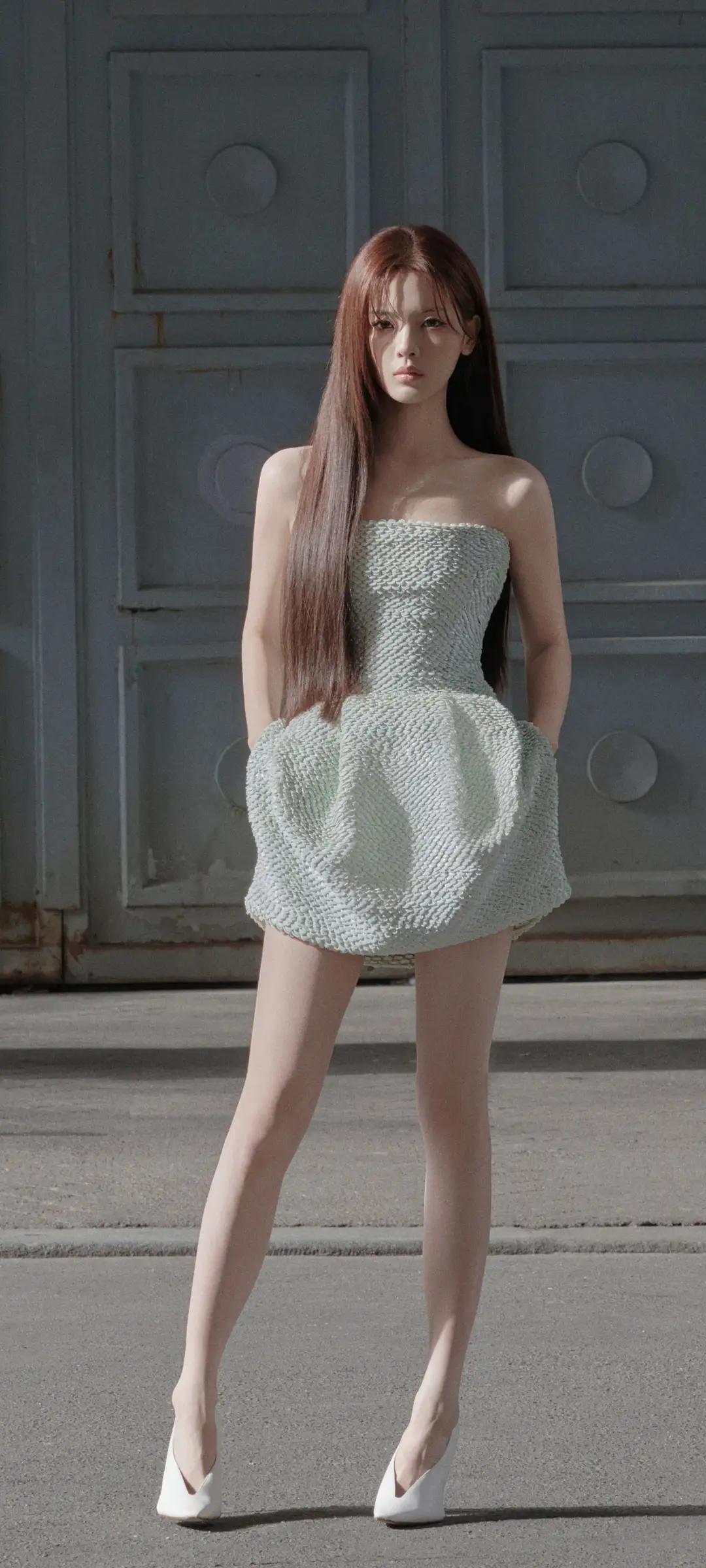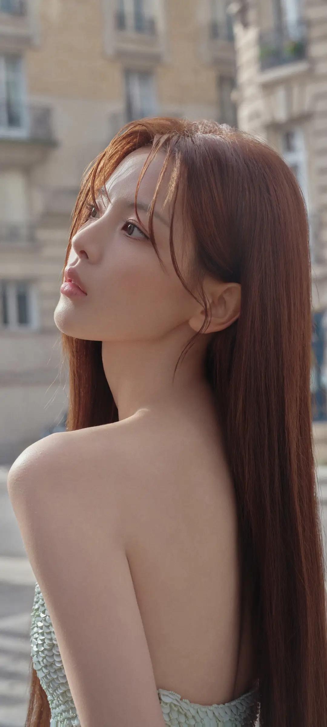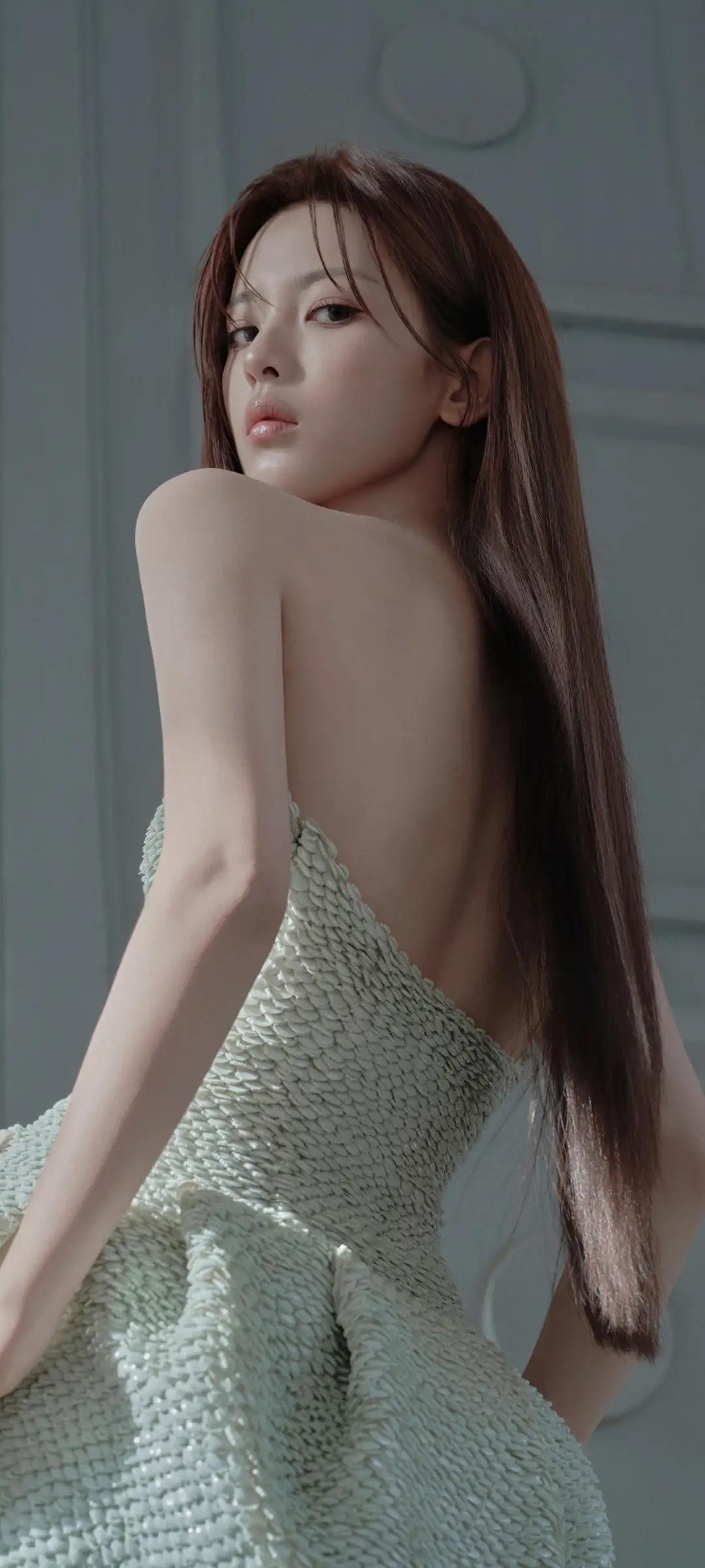 美女壁纸~杨超越,清冷疏离感拉满!薄荷绿抹胸花苞裙搭配黑长直,又酷又飒,美到失语