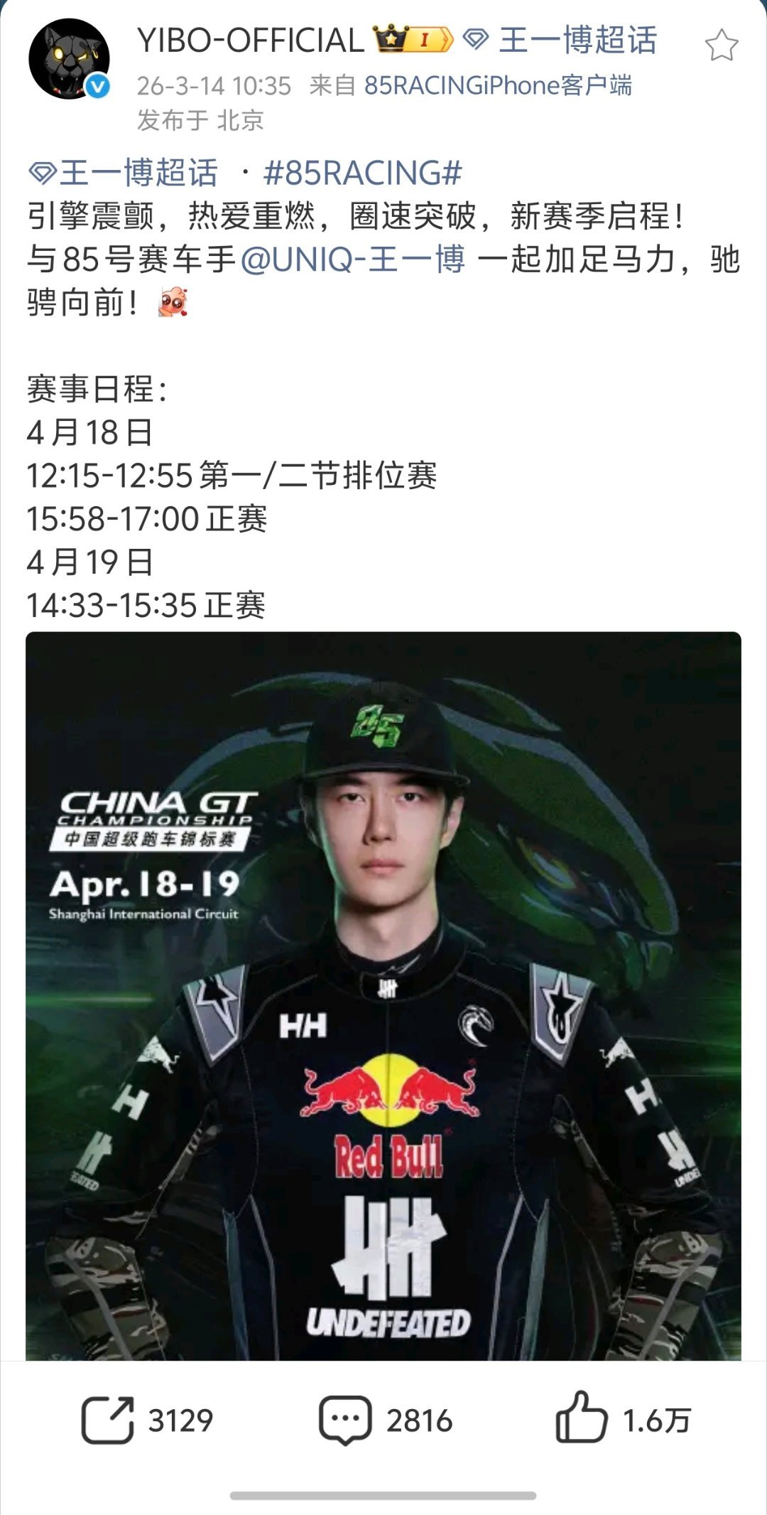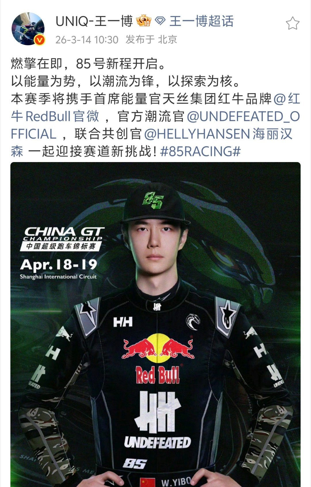 红牛,HH,UNDEFEATED成功上位!!!!红牛好大!!!!!!啊啊啊啊啊王一博好帅!!!!赛车场见!!!!王一博