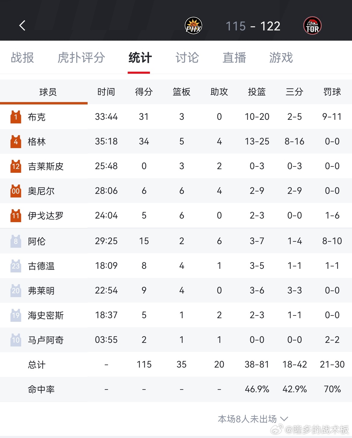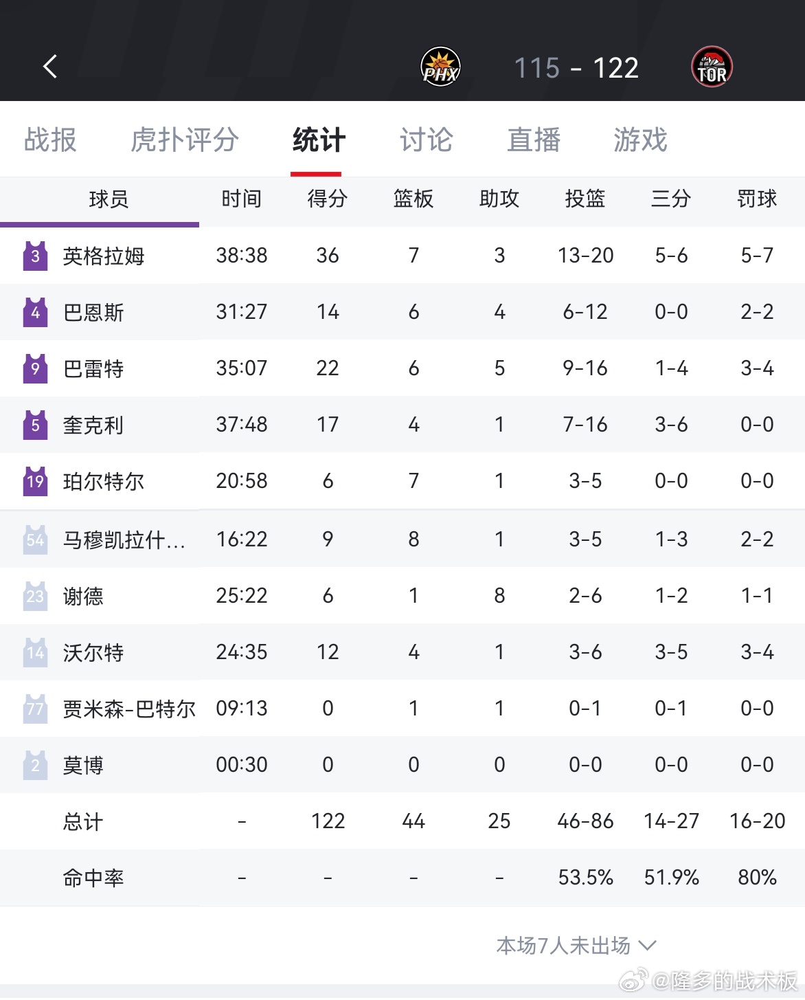 太阳输了!115-122不敌猛龙,结束四连胜