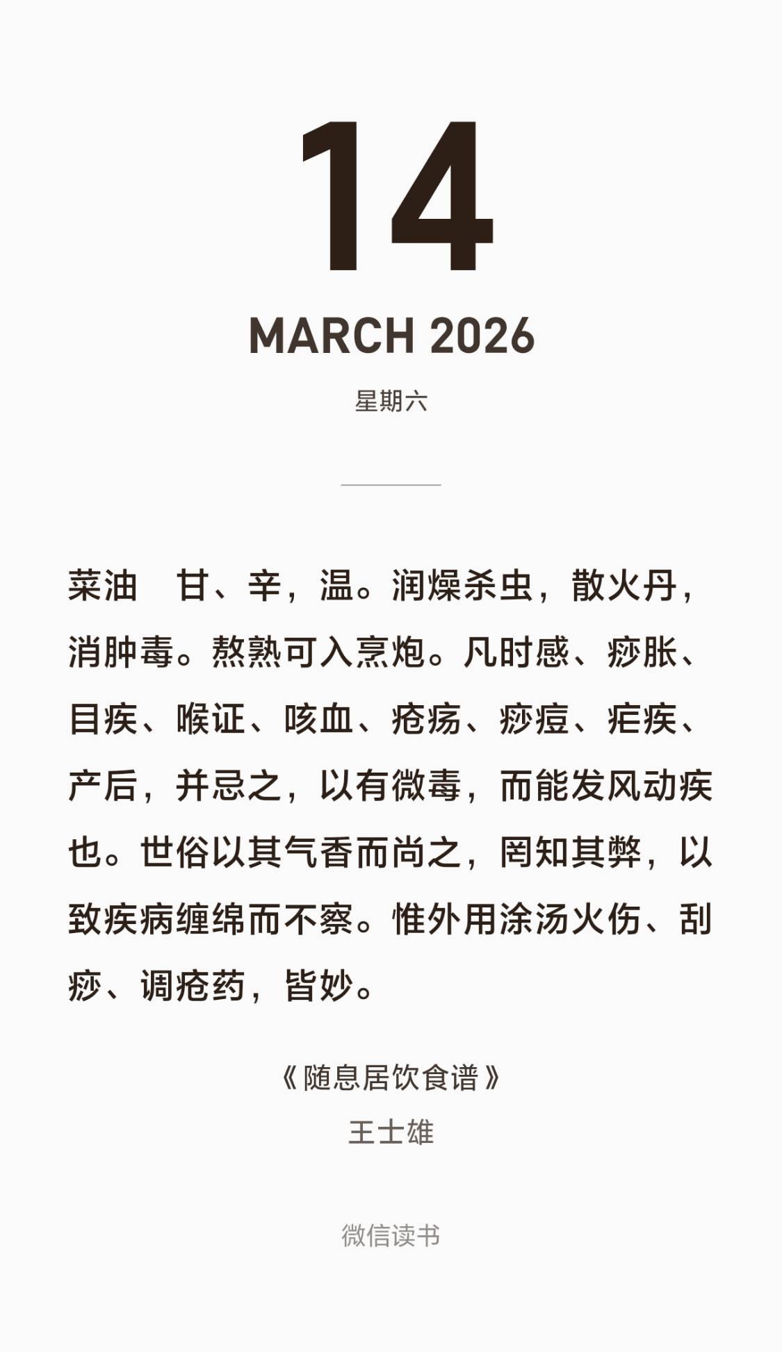 传统医学对食物的认识多是殊途同归。无论王孟英还是阿育吠陀都认为菜籽油是泻法,虚人不能多吃频繁吃,虚时更不能吃。另外和别的平和泻食(虽泻但不动气)不同,王王孟英认为菜籽油动气动风,专门强调世人被它的香气吸引,不知它的副作用,吃的疾病缠身都不知道为什么。阿育吠陀认为菜籽油不只是泻(轻)而且还锐利,两样特性加起来会导致瓦塔(气)躁动(动气动风)