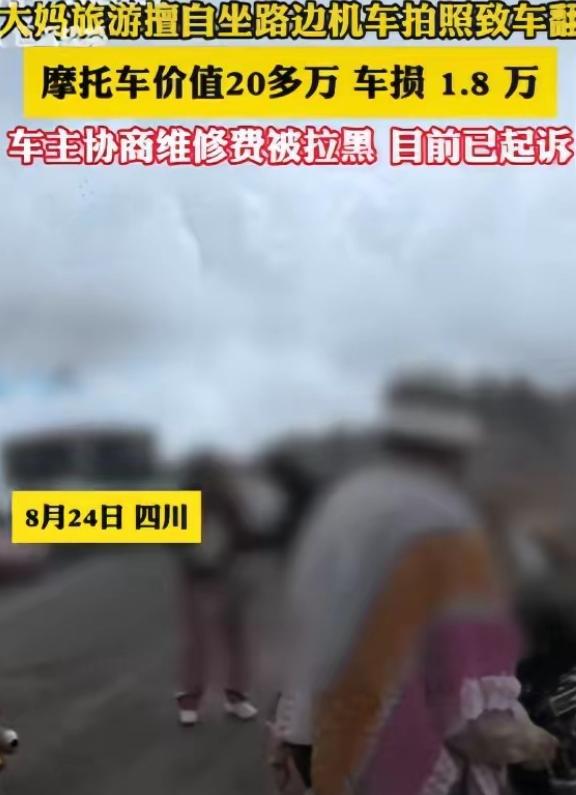 “这下后悔了吧!”四川一大妈不听游客劝阻,执意要坐价值20多万元的摩托车拍照,不料,导致摩托车倾倒在围栏上,车上头盔滚落山崖,车主送到4S店定损费为1.8万元,而大妈得知价格后的做法,让人很是气愤,网友:绝不能惯着大妈的臭毛病! 一辆落地近二十万的进口摩托车,在四川景区路边好好停着,没招谁没惹谁,却因为一位大妈的一时兴起,不仅被撞得伤痕累累,头盔滚落到山坡下,车主更是耗费心力维权。 而大妈得知赔偿金额后的举动,彻底惹恼了全网网友,没人觉得她冤,反而一致喊话绝不能惯着这种毛病。 事情发生在2025年8月,一位山西摩友趁着闲暇,骑着自己心爱的进口摩托车去四川阿坝的景区游玩,这款摩托车价值不菲,落地将近二十万,对车主来说不仅是代步工具,更是精心呵护的宝贝。 抵达景区后,车主将摩托车稳稳停在公路边,仔细检查确认无误后,才放心地独自上山游览,没曾想这一离开,就出了意外。 当时一支旅游团路过,其中一位辽宁籍的大妈被这辆造型炫酷的摩托车吸引,眼神瞬间亮了起来,不顾同行人的劝阻,也没管车主是否在现场,执意要坐上去拍照留念。 旁边路过的摩友见状,也连忙上前提醒,告知她这车价格昂贵,千万别碰坏了,可大妈根本没把这些提醒放在心上,只觉得拍张照而已,能有什么问题,径直抬腿跨上了摩托车座椅。 或许是摩托车本身重量不轻,或许是大妈拍照时过于投入,没注意保持平衡,就在她摆弄姿势准备拍照的瞬间,摩托车突然失去重心,重重地向一侧倾倒,撞在路边的围栏上,发出沉闷的响声。 车上的头盔也被甩了出去,顺着山坡一路滚落,费了好大劲才被人捡回来,而摩托车的油箱被磕出一个大坑,右侧护板开裂,刹车线也断了,一眼就能看出受损严重。 事发后好心的摩友及时拦住了大妈,还拍下视频留存证据,避免后续出现纠纷。 大妈看着受损的摩托车,脸上没了之前的兴致,在摩友的协调下,先行赔付了一千元,还留下了自己的联系方式和身份信息,承诺如果后续维修费用不够,再继续补充赔偿。 车主赶到后见大妈态度还算诚恳,又想着她是出来旅游的,便没有过多为难,让她先跟着旅游团离开。 可车主没料到,这份体谅换来的却是逃避,因为摩托车还能勉强骑行,他耗时两天,小心翼翼地骑着刹车受损的摩托车,从四川长途跋涉回到山西,将车送到4S店定损。 工作人员检查后告知,这款摩托车的配件都是进口的,光是更换受损的油箱、护板和刹车线,就需要1.8万元,要是加上受损的尾箱和头盔,总费用将近两万元。 车主拿着定损单,连忙联系大妈,告知她实际维修费用,希望能协商后续赔偿事宜,可此时的大妈,早已没了之前的诚恳。 起初还敷衍回应,后来干脆不接电话,甚至直接拉黑了车主的微信,彻底玩起了失联,仿佛之前的承诺从未说过一样。 车主无奈之下,只能尝试起诉维权,最初向大妈居住地的法院提起诉讼,却被告知需在事发地起诉,只能再折返四川准备相关事宜。 这件事被曝光后,网友们瞬间炸了锅,没人同情大妈的处境,反而纷纷指责她的不负责任。 大家都说,明知别人的东西不能乱碰,被多次劝阻还执意为之,出了问题又逃避责任,这种臭毛病绝不能惯着。 其实说到底,这从来不是钱多钱少的问题,而是做人的边界感和责任感,别人的财物再好看,也不能随意触碰,一旦造成损失,勇于承担才是最基本的底线,逃避从来解决不了问题,反而会让自己陷入更被动的境地。