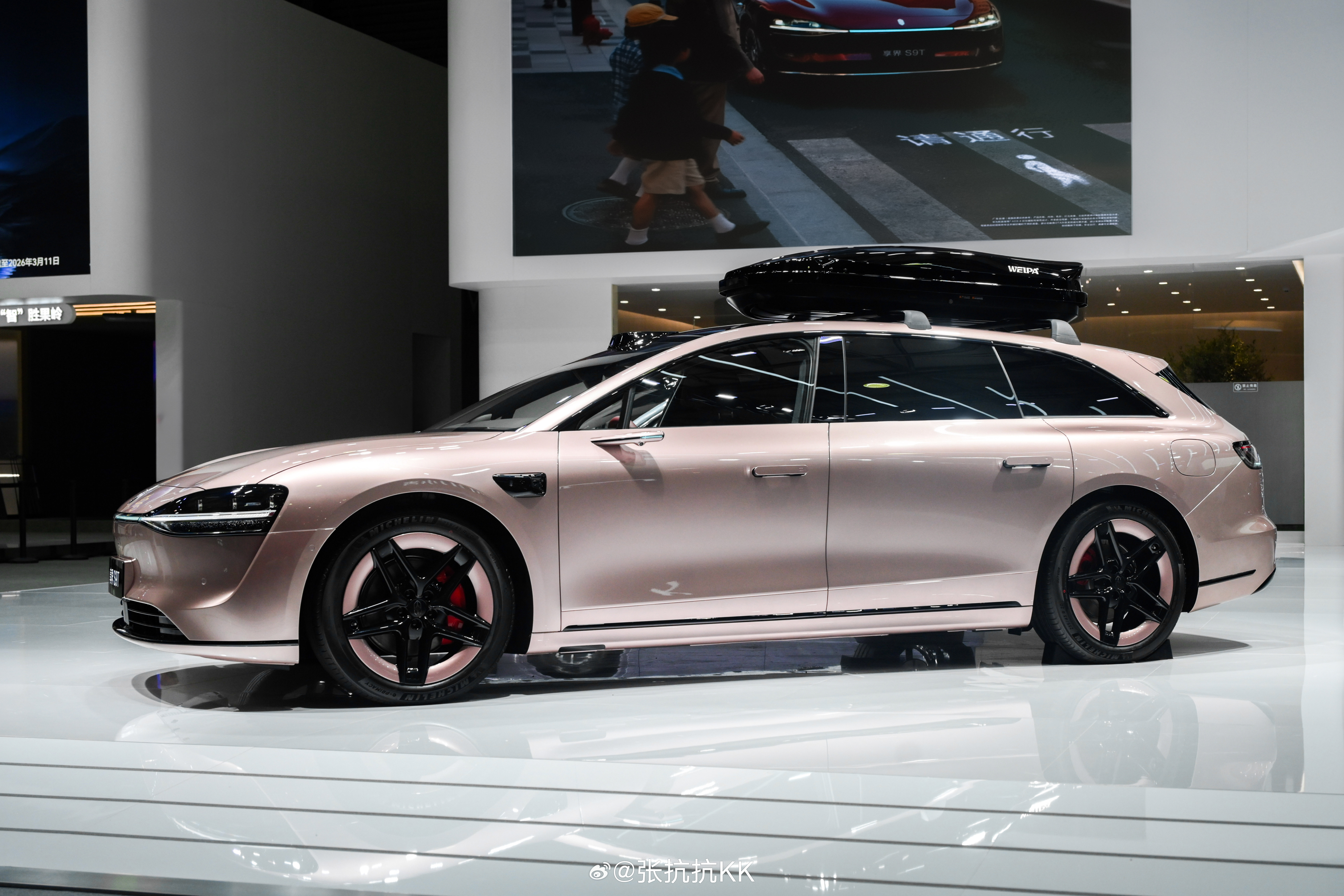 然后到了享界S9T的旅行车之后,女性用户越来越多。所以这次,余承东在上海AWE展会上,和尼格买提一起宣布:S9/S9T推出星玫粉、月绒白全新车身配色及新样式豪华轮毂。