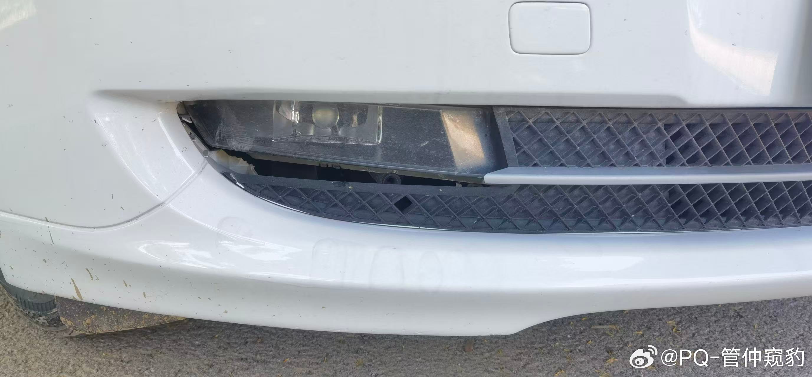 还保留了几张细节照片收音机,雾灯被撞,减震漏油