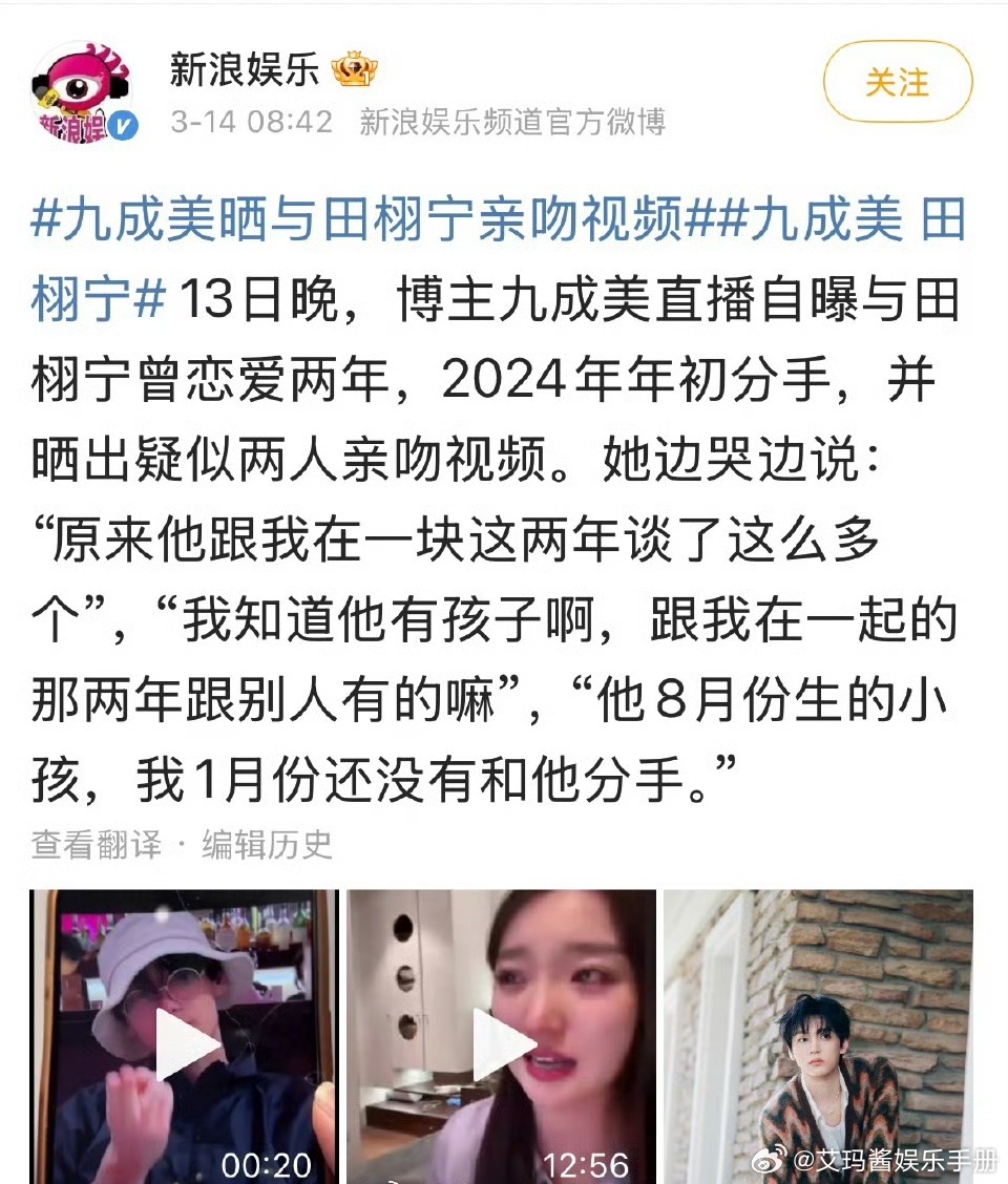 博主九成美爆料和田栩宁亲吻视频,称自己和田栩宁恋爱两年,2024年年初分手,网友发现两人视频里的钢琴也十分相似。目前粉丝澄清视频是ai,图是之前在网上看到过的,你怎么看?九成美 田栩宁九成美晒与田栩宁亲吻视频
