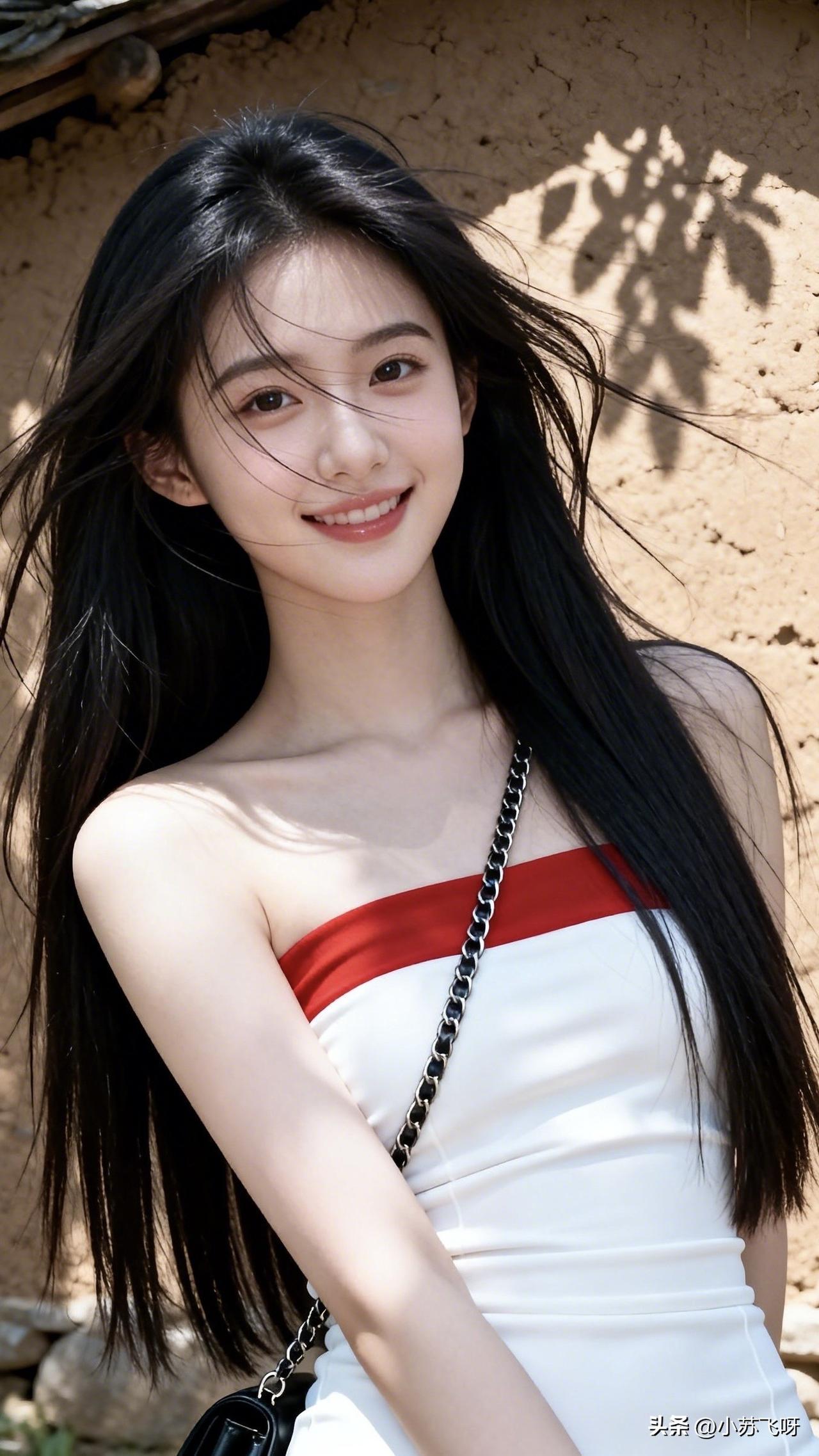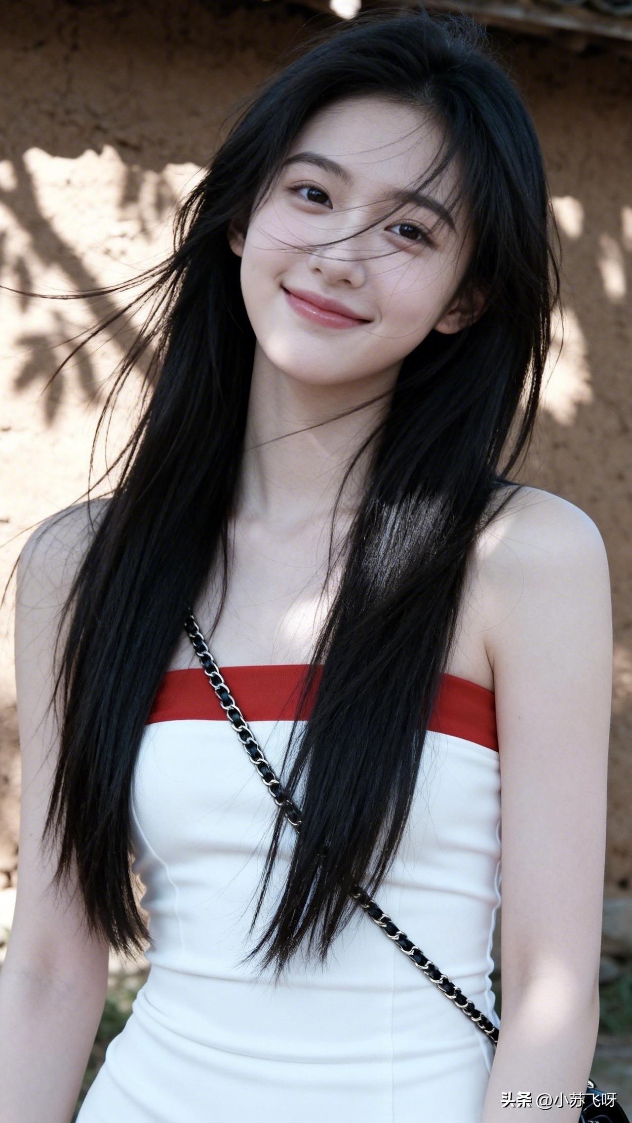 :浅笑盈盈似蜜甜,双眸翦水映花妍;青丝袅袅随风舞,素袂飘飘若梦仙! 唇绽樱桃含雅
