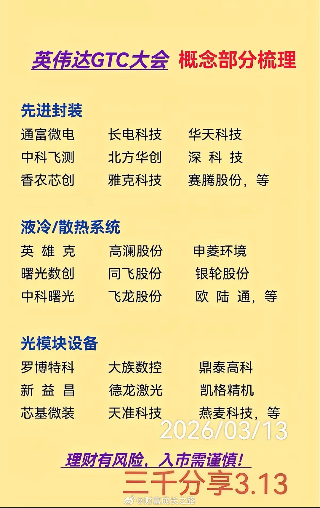 英伟达GTC大会:核心关联龙头股!1.PCB/载板2.电子布3.光通信4.金刚石热沉片5.先进封装6.液冷散热系统7.光模块设备