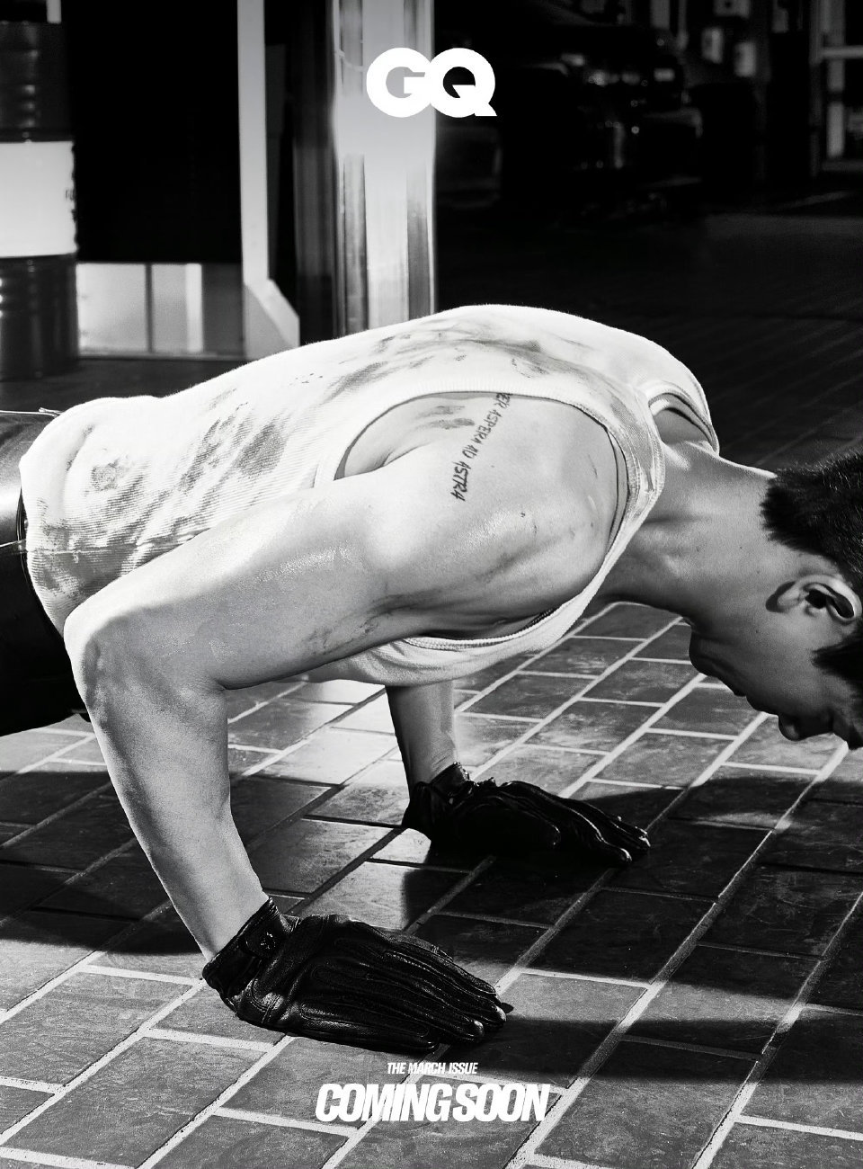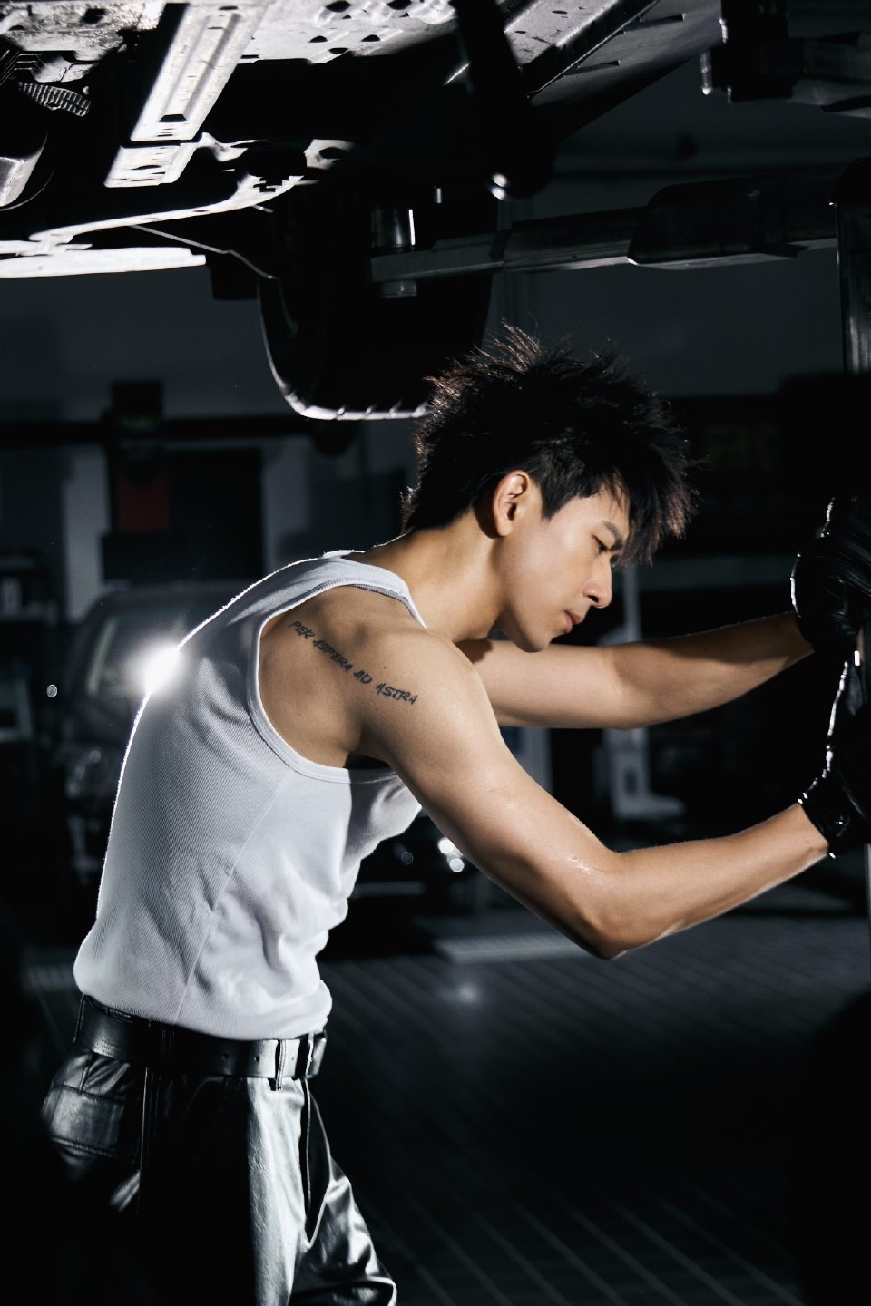 李现肩臂纹身李现无袖修车工