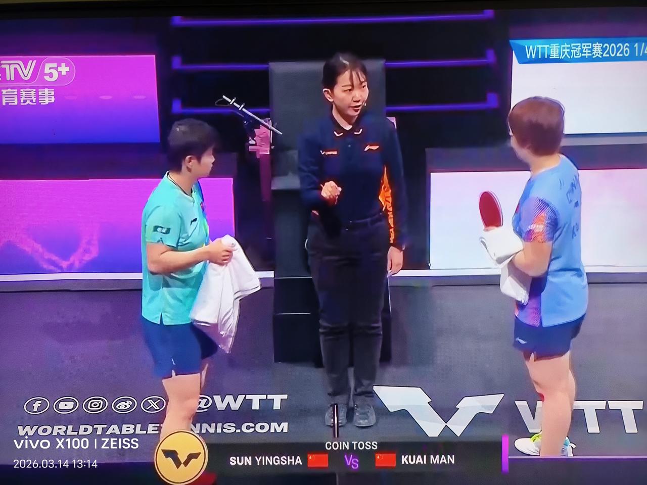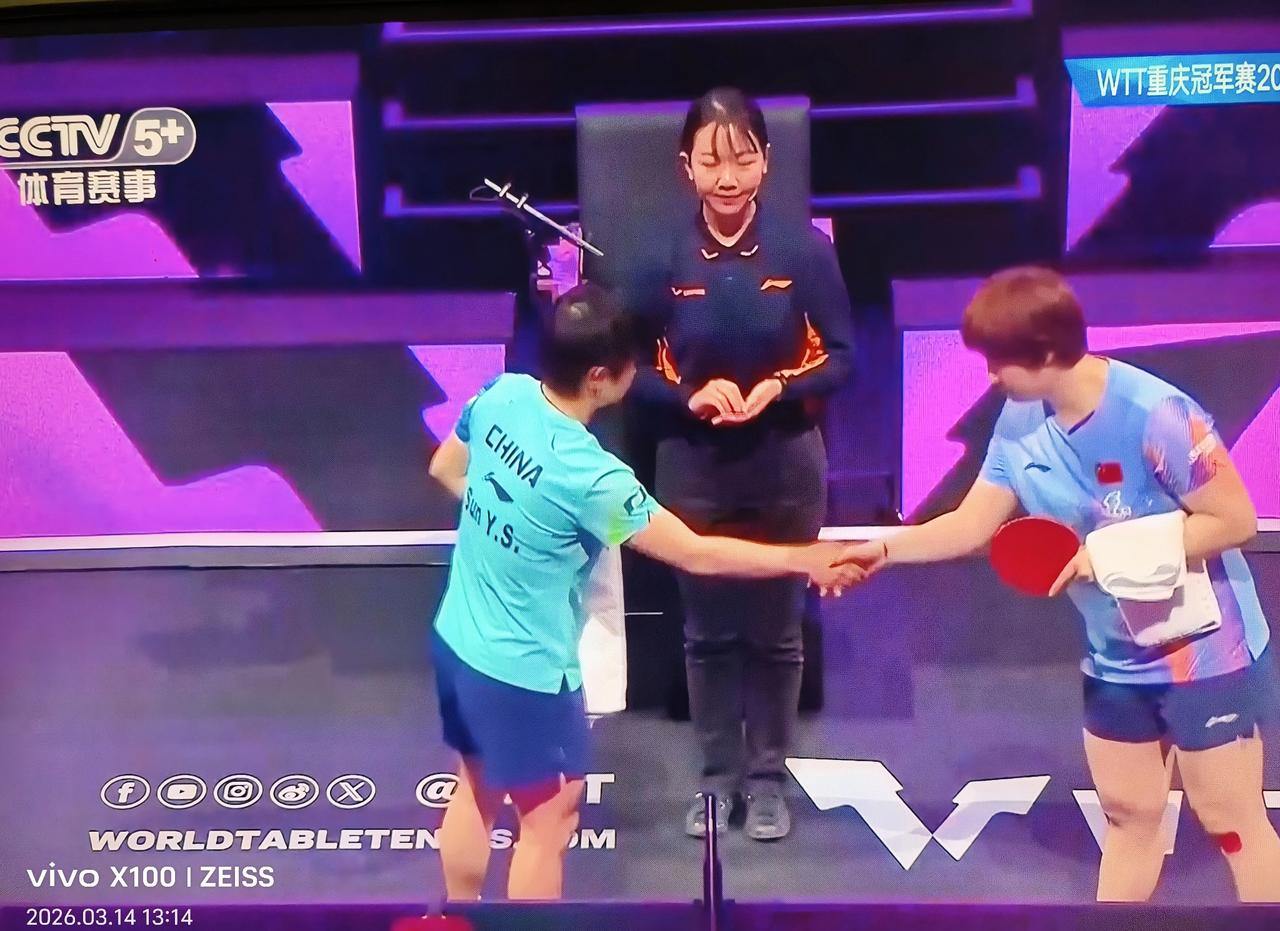 内战又早早来了, 孙颖莎🇨🇳VS蒯曼🇨🇳! 两人在2025年以来有五次交手,除了一次孙颖莎因伤退赛之外,孙颖莎保持全胜战绩。 今年的海口亚洲杯半决赛上,莎莎4-2刚胜了蒯曼。所以蒯曼想要有所突破,还是有一定难度的。 不过想必蒯曼也预先做了充足准备,一起来看看蒯曼是否有进步。 这是2026WTT冠军赛重庆站女单1/4决赛,评论区第一时间播报战况哦。