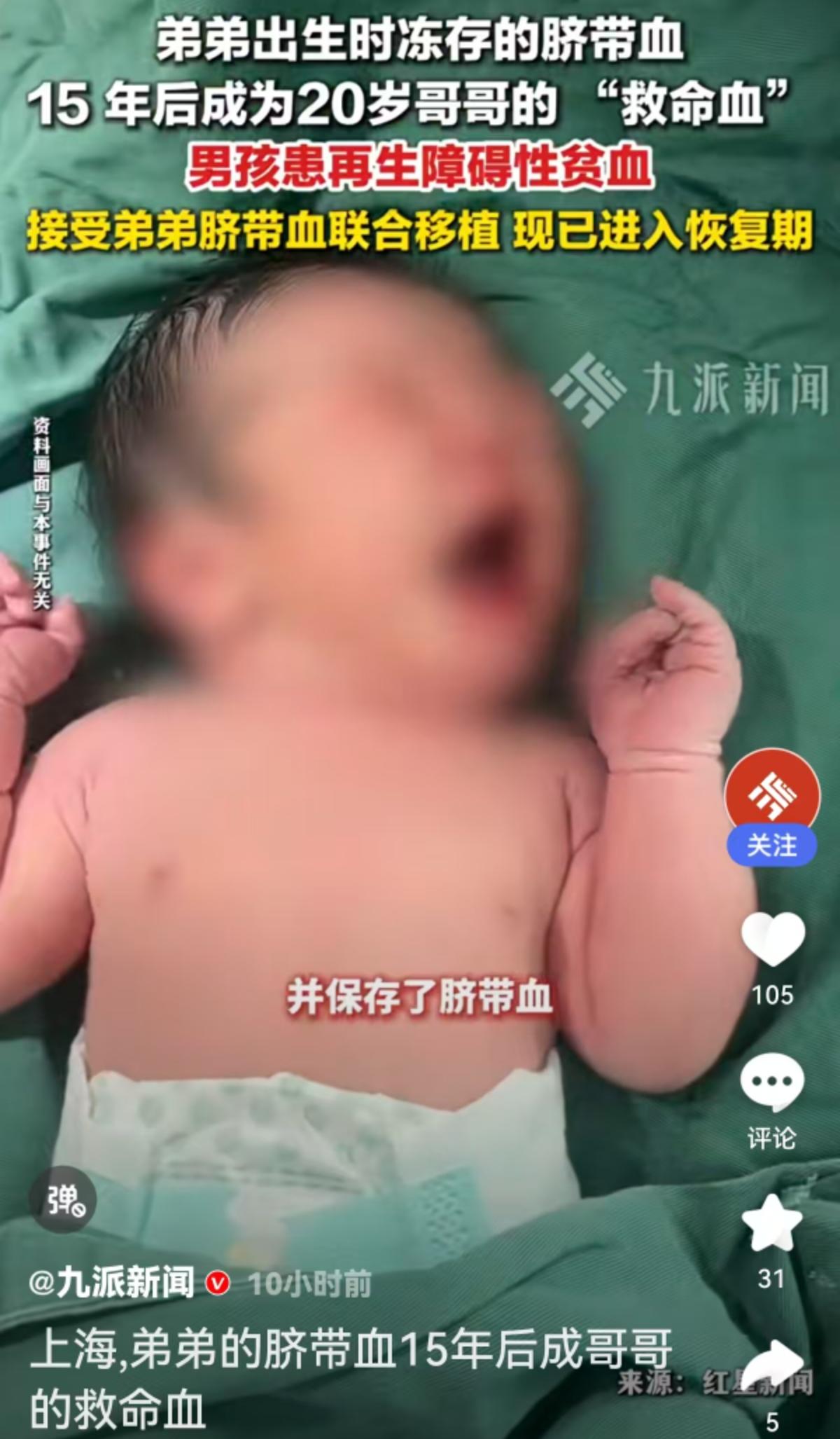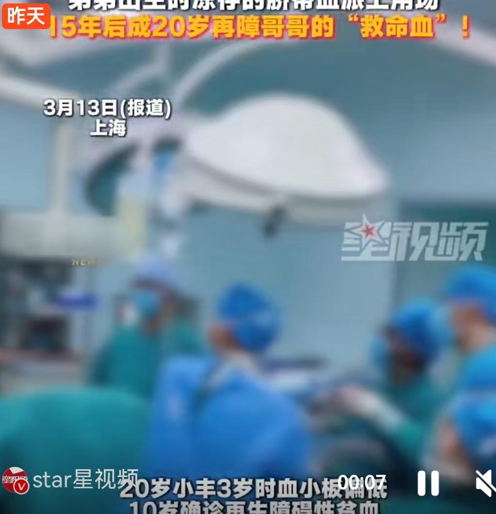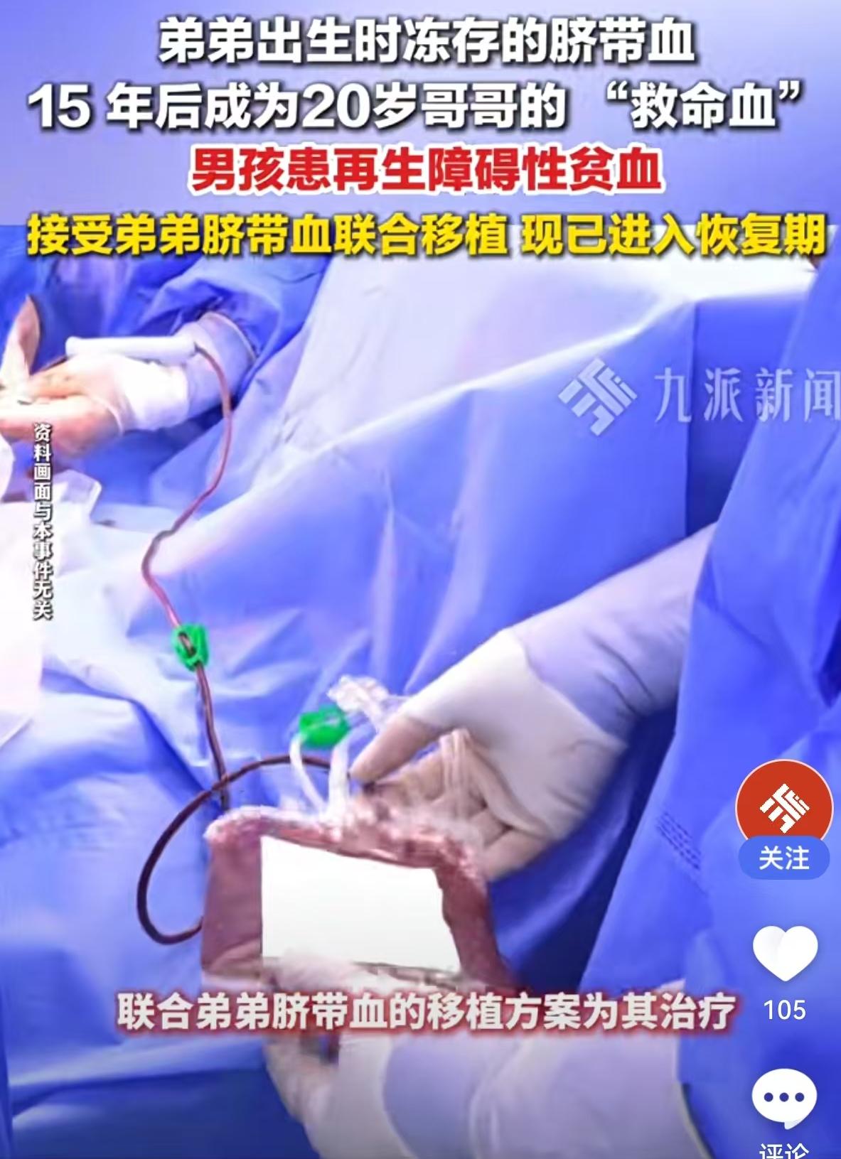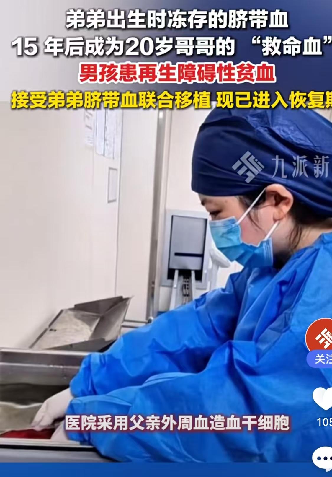 3月13日,上海交通大学医学院附属上海儿童医学中心的移植病房里,一场跨越了15年的生命接力终于跑完了最关键的一棒。 20岁的小丰(化名)刚刚接受了造血干细胞移植手术,正处于恢复期。这笔“救命种子”,来自他的父亲,也来自他弟弟出生时冻存的一份脐带血。这份脐带血,在零下196度的液氮罐里,安安静静地沉睡了整整15年3个月。 这一等,就是五千多个日夜。 故事的起点要追溯到多年前。这一家是河南人,小丰3岁时就查出血小板偏低,身体一直不太好。到了5岁那年,家里一位做儿科医生的亲戚敏锐地提了个醒:趁着生二胎,把脐带血存下来吧。就是这一句话,让母亲李女士在2009年生下小儿子时,做出了一个极具前瞻性的决定——储存脐带血。 当时谁也不知道这东西能不能用上,什么时候用上。直到小丰10岁那年,不幸确诊再生障碍性贫血。这10年里,病情像一颗定时炸弹。而当治疗走到必须移植这一步时,15年前那个“未雨绸缪”的决定,成了击碎黑暗的光。 这次手术并非单打独斗,而是采用了“父亲外周血造血干细胞”联合“弟弟冻存脐带血”的方案。这不仅利用了亲缘关系的配型优势,更验证了脐带血长期冻存后的活性。事实证明,沉睡15年的“生命火种”,一旦解冻,依然能迸发出拯救生命的力量。 评论区里,网友“我轻轻的靠近”感叹:“造血干细胞移植相当困难,真是医学奇迹了。”确实,这不仅医学上的技术突破,更是一个家庭远见卓识的胜利。还有网友借此争论中医西医,其实大可不必,这是现代生物技术和家庭亲情的双重胜利。 这件事给咱们普通人的触动,远比书本上的科普来得震撼。 过去很多人总觉得存脐带血是“智商税”,觉得花钱存个几十年,大概率用不上。小丰的经历给所有人都上了一课:你永远不知道明天和意外哪个先来。当年的一个“保险”动作,在15年后成了救命的“底牌”。 这不仅是弟弟给哥哥的礼物,更是父母当年那份沉甸甸的爱与远见。在医学技术日新月异的今天,哪怕只有万分之一的概率,只要能用上,对于一个家庭来说,就是百分之百的希望。对于正在纠结要不要存脐带血的父母来说,这或许就是最好的参考答案。 以上内容仅供参考和借鉴