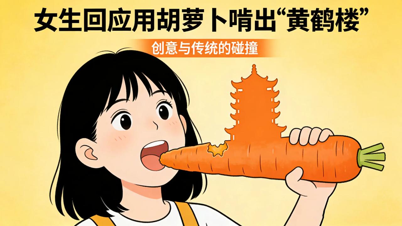 女生啃胡萝卜啃出黄鹤楼!网友评价,这嘴是雕刻机吧! 谁能想到,普通的胡萝卜,通过女生嘴居然能啃出黄鹤楼!不借助工具,没有雕刻刀,全靠一张嘴精准拿捏,层层飞檐、轮廓神韵一模一样,还原度直接拉满。女生之前还啃过凤冠和万里长城,下一步计划啃清明上河图! 网友看完直接炸锅,别人啃胡萝卜是吃饭,你啃胡萝卜是艺术创作!这手艺也没谁了,这赛道完全不卷,这边风景独好,就是有点费牙! 啃胡萝卜,啃出了文物级别的精致,这大概就是普通人最可爱的创造力吧!