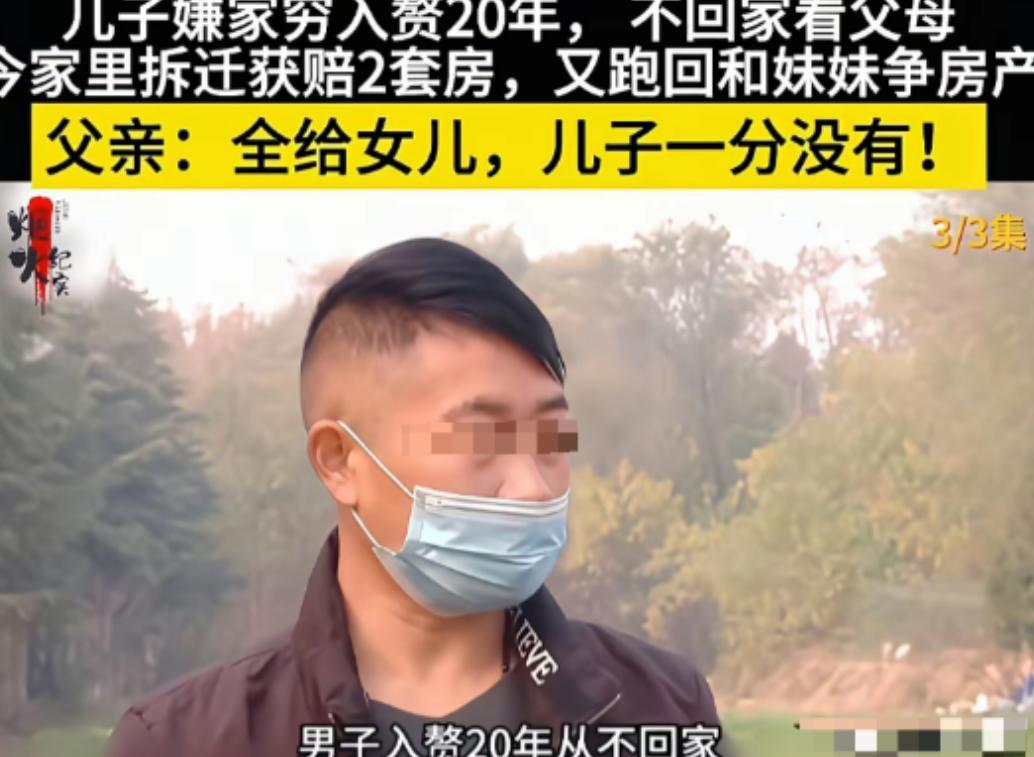 2016年,21岁男子嫌弃家里穷,之后入赘别家22年,期间,他不回家看父母,如今家里拆迁分到了2套房,他又跑回来跟妹妹争房产,父亲:“全给女儿,儿子想都别想”! 事情是这样的,有个男子,21岁那年,因为嫌弃家里穷,觉得跟着父母没前途,二话不说就入赘到了别人家,彻底撇下了生他养他的爹娘。 这一去,就是整整22年,这22年里,他就像人间蒸发了一样,从来没回过一次家,也没给父母打过一个电话、寄过一分钱。 而父母年纪越来越大,身体一天比一天差,又常年被病痛缠身,住院更是家常便饭,可这个冷血儿子从来不管不顾,全靠女儿和女婿忙前忙后、悉心照料。 端屎端尿、送医拿药,不分昼夜,毫无怨言,街坊邻居都看在眼里,谁不夸一句这女儿比儿子贴心百倍?要是没有这个女儿,老两口恐怕早就没人管、没人问,死在家里都没人知道! 可谁能想到,前段时间,老两口住的老房子拆迁,分到了两套安置房,这下好了,消失了22年的白眼狼儿子,跟闻到腥味的苍蝇一样,突然冒了出来,脸皮厚得能磨成鞋底! 他回来之后,一改之前的冷漠,对着父母嘘寒问暖、献殷勤,那虚伪的样子,多看一眼都觉得恶心!可明眼人用脚指头想都知道,他哪里是真心孝顺,分明就是冲着那两套拆迁房来的! 没装几天,他就彻底暴露了本性,直接摊牌要房子,说自己是家里的儿子,这两套房子必须有他一套,还跟妹妹大吵大闹,说妹妹不该独占父母的财产。 看着眼前这个陌生又自私的儿子,老父亲气得浑身发抖,当着街坊邻居的面,一字一句地骂道:“全给女儿,儿子想都别想”!这话,解气! 老父亲说得对,这22年,他没尽过一天当儿子的义务,父母生病他不管,养老他不问,爹娘过得好不好、活不活得下去,他从来没放在心上,现在家里有好处了,他倒跑回来了,想坐享其成,天底下哪有这么美的事? 而且从法律上来说,父母的财产,他们有权利自由处置,就像律师说的,老人可以通过赠与协议,把财产留给任何一个子女,不需要其他子女同意,这是老人的合法权利,谁也别想干涉! 老父亲早就看透了这个儿子的真面目,提前找村干部写了赠与协议,明确把两套房子都留给了贴心尽孝的女儿,这都是他的真心意愿,谁也改变不了! 最后,这个白眼狼闹了一场,不仅没拿到一套房子,还落得个众叛亲离、人人唾骂的下场,成了街坊邻居茶余饭后的笑柄,纯属自找的! 说到底,这都是他自己选的路,怨不得别人!嫌家里穷可以自己去拼、自己去挣,入赘也没人拦着,但不能忘了生你养你的父母,不能丢了做人的良心! 亲情不是用来利用的,孝顺也不是装出来的,像这种忘恩负义的白眼狼,被父母抛弃、被众人唾弃,都是咎由自取,不值得半点同情!
