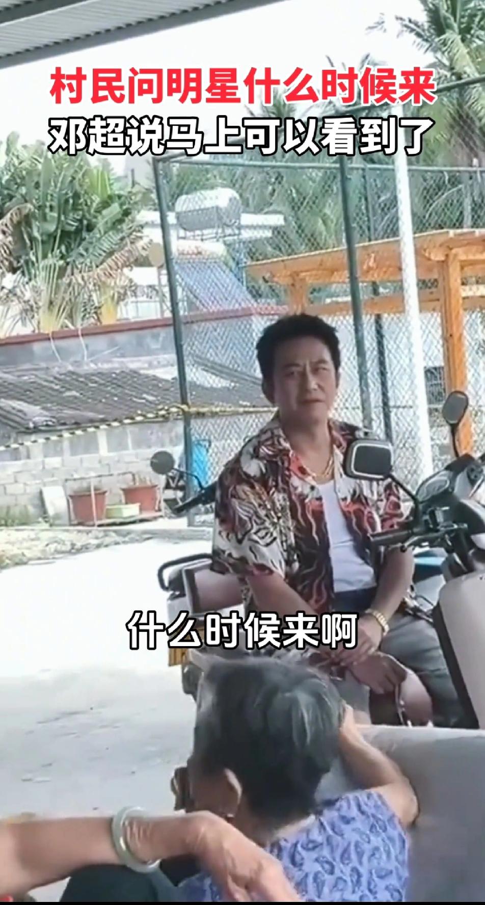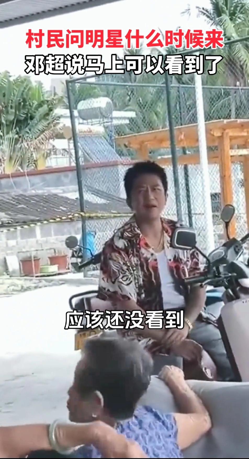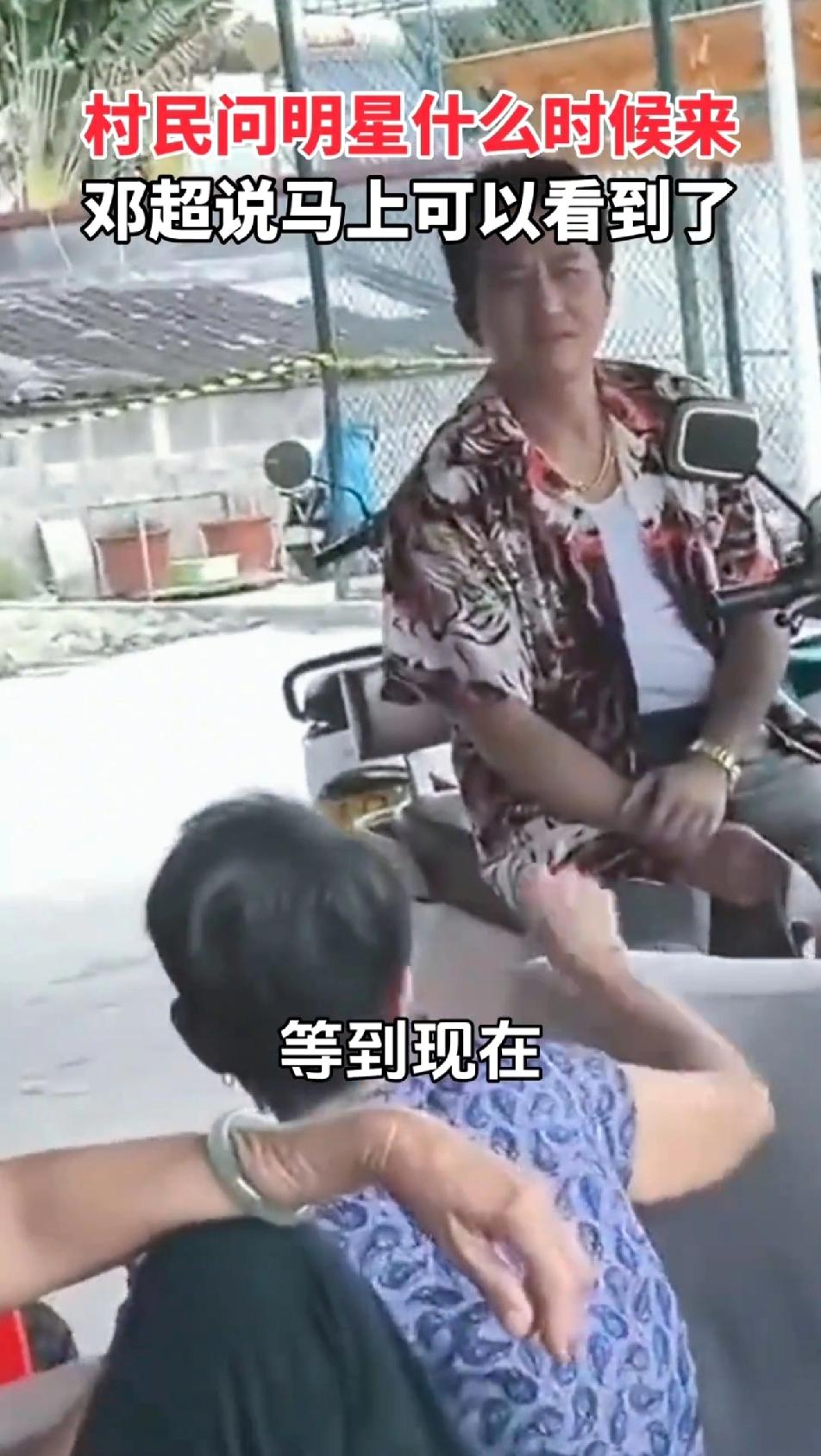 邓超的知名度那么低吗?感觉他是个老少咸宜的大明星了。没想到三亚路边的老奶奶翘着脚问邓超:早上来等着看明星,等到现在……。超哥也是个活宝:看到了吗?老奶奶们抱怨还没看到,问邓超:你问那个明星,什么时候来啊!邓超回:马上就可以看到了……不知道超哥拿出老婆孙俪的照片会不会好一些,感觉老奶奶们应该都看过《甄嬛传》,兴许能认出孙俪,反正邓超是入不了奶奶们的眼!