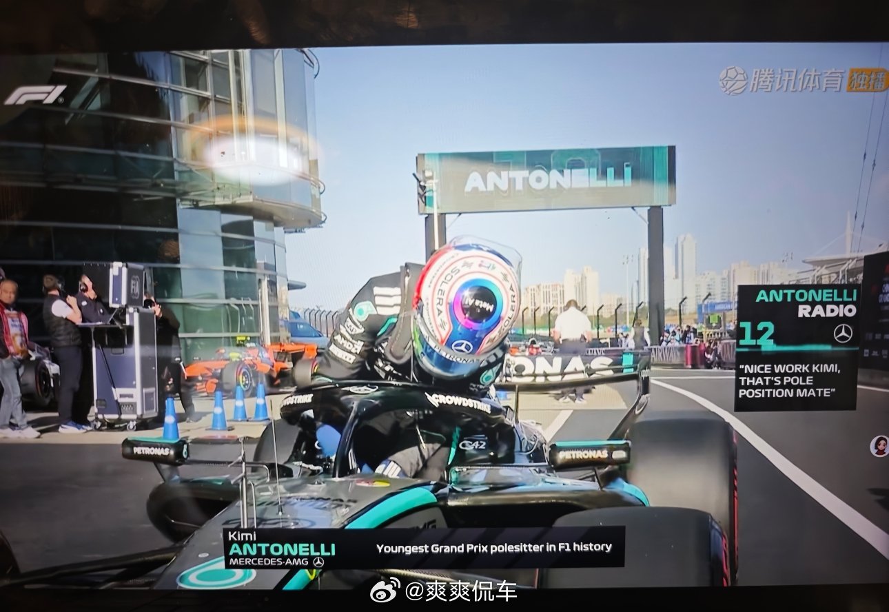 F1f1排位赛安东内利,史上最年轻杆位获得者,上赛算是创造记录了恭喜奔驰车队,