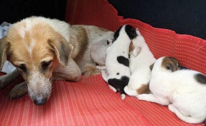 一男子开车到半路遭到流浪狗拦截,结果下车一看, 流浪狗妈妈带着4个孩子,身体非常瘦弱,拿出食物投喂 它们吃的狼吞虎咽的,于心不忍的男子把它们都带走了。 也算是给它们一家温暖的家了,一家五口再也不担心没有 饭吃了。希望流浪动物们也能遇到如此心善的人把