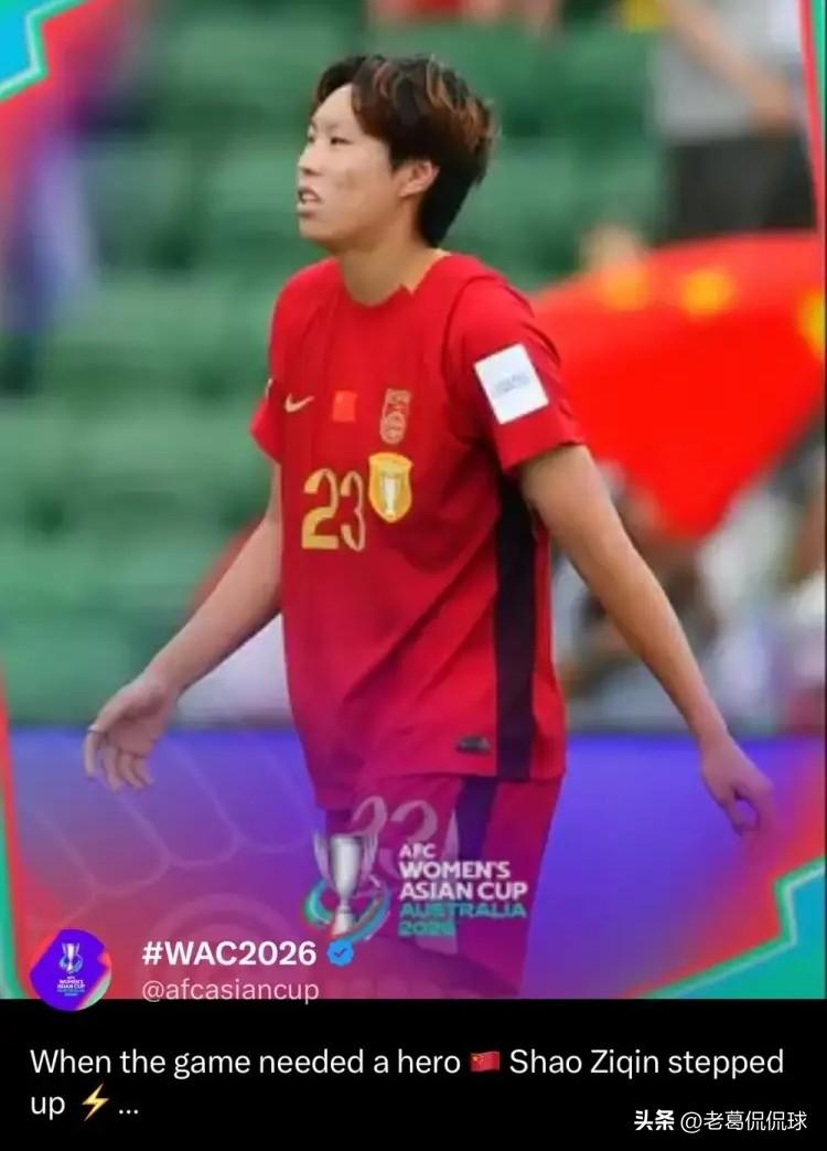 女足亚洲杯官方真是太懂人情世故了!在今天中国女足以2:0击败中国台北女足的亚洲杯1/4决赛的赛后,女足亚洲杯官方特意更新社媒,晒出了中国女足球员邵子钦在本场比赛中的进球视频,并写道:“当比赛需要英雄的时候,她站了出来。” 正如女足亚洲杯官方写的那样,本场比赛邵子钦绝对是中国女足的英雄,正是邵子钦的进球帮助中国女足赢下了这场焦点战,邵子钦完全配得上所有的赞誉。