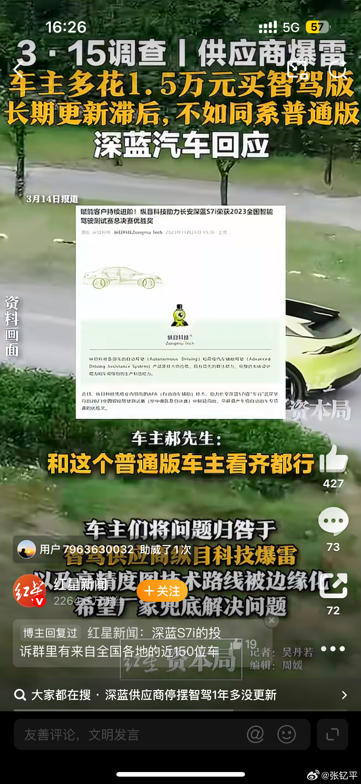 多花1.5万买的智驾版不如普通版深蓝供应商停摆智驾1年多没更新“车主们将问题归咎于智驾供应商纵目科技爆雷”——大家好理智。深蓝也给出了答复,已经有可落地的解决方案。