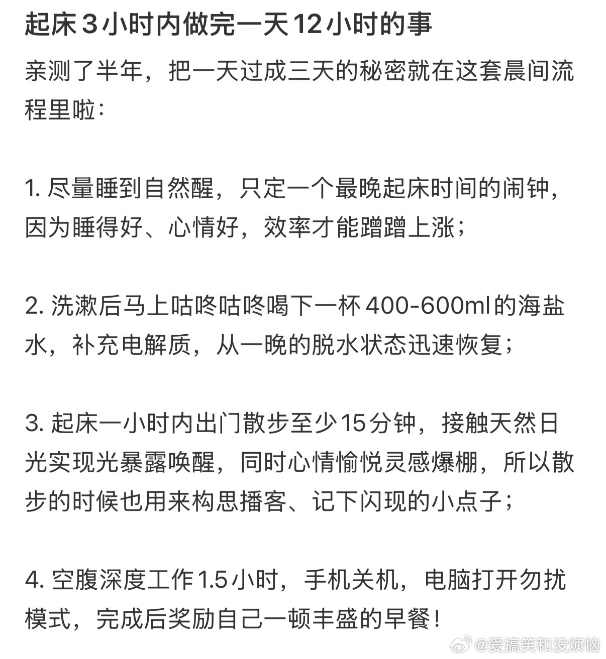 起床3小时内做完一天12小时的事