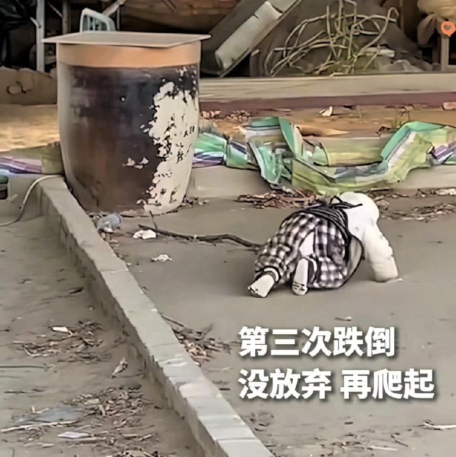 太治愈了! 人民日报都点赞的14个月萌娃,学跨台阶摔了3次都不哭,第四次稳稳站定