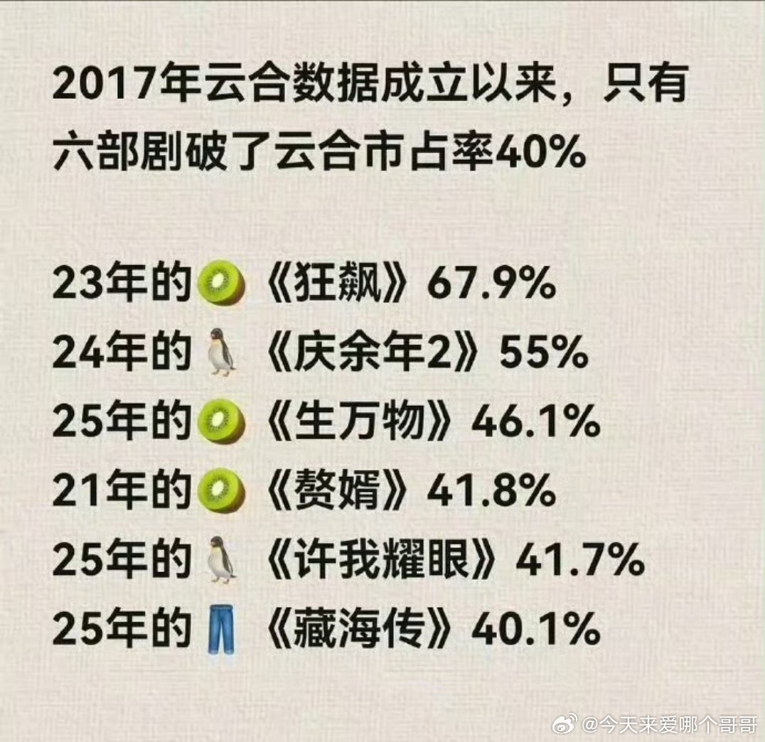 逐玉46.8%超过生万物,云合市占率历史第三