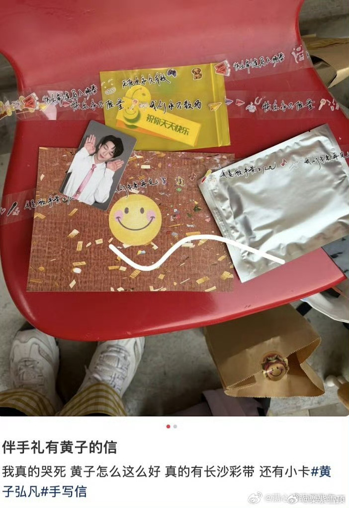 黄子弘凡鸟巢物料偷跑中 追星女梦寐以求的事情发生了黄子你咋这么会呢!!鸟巢伴手礼打开里面有手写信、有彩带、有小卡,不敢想粉丝们收到会有多激动!!