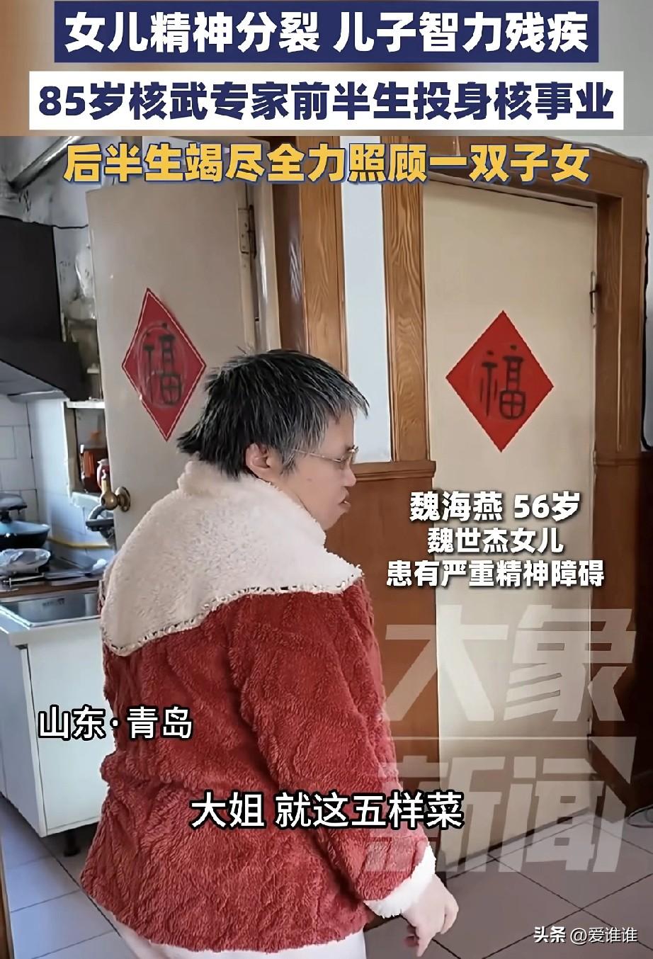 儿子智力残疾,女儿精神分裂,85岁核武器研究专家前半生为了国家,后半生回归家庭照顾儿女。青岛,85岁的老人魏世杰,他这一辈子,前半生他是隐姓埋名的核武专家,在青海和四川的深山里一待就是26年,冒着生命危险搞炸药测试,参与了中国第一颗原子弹和氢弹的研制,那时候他的工作是真正的“粉身碎骨”,身边常有同事牺牲,但他从没退缩过。 后半生,他回到家里,却迎来更艰难的“持久战”,儿子天生智力残疾,女儿患上精神分裂症,妻子后来也因为压力太大精神崩溃,一家四口,三个重病号,全压在他一个人肩上,女儿有严重的强迫症,喝杯水都要折腾一小时;老伴几次想自杀,他要两边跑着照顾,但他硬是咬着牙撑了下来,还自嘲是个“比较幸福的老头”,因为只要孩子能好好吃顿饭、唱个歌,他就知足了。 好在这些年,有位叫王月玲的帮手一直陪着他,像亲人一样照顾这个家,如今85岁的魏世杰把孩子们的后事都安排妥当,他常说:“和苦难握手言和,日子才能过下去。” 这个老人没什么豪言壮语,他只是用一辈子告诉我们:什么叫对得起国家,也对得起家庭!
