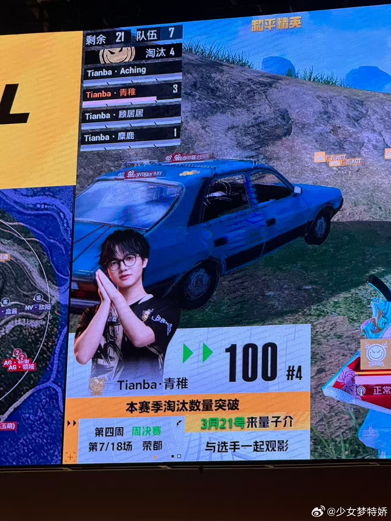 赛场火力全开!恭喜Tianba青稚达成赛季淘汰破百里程碑,单局4淘汰1441伤害强势拿下MVP,实力与数据双丰收!