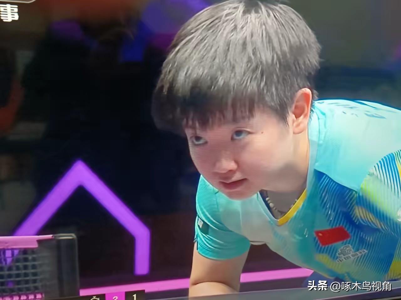 这不打崩了吗?最后一局多少个自杀球了?完全是无心恋战了。头一次看见莎莎被人打成这样。 这边蒯漫越战越勇阿,你看,她也不管场下什么时候喊了。该发球发球,完全不走心。这不是打到忘我的境界了吗? 这场球难得一见!最后那局是几比几了?
