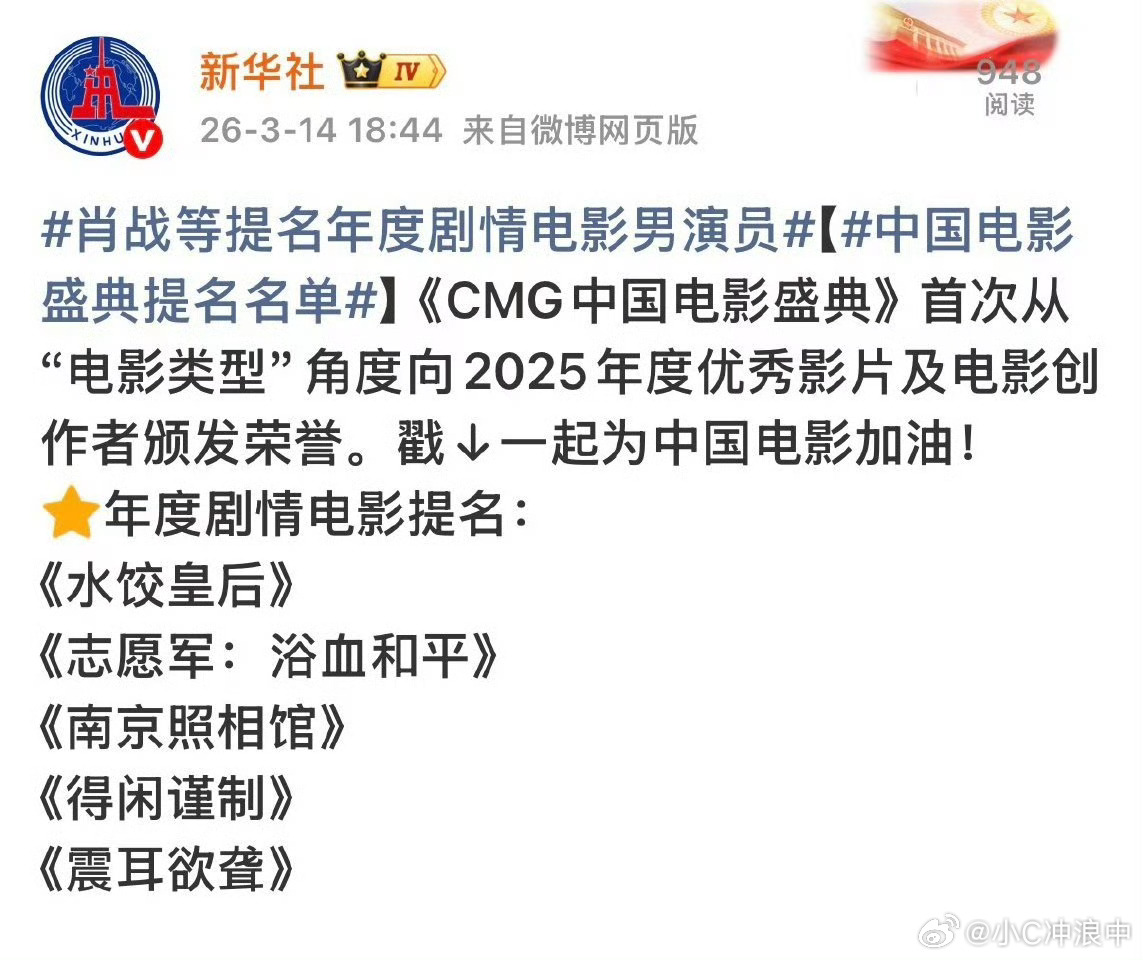 知道央妈这个词条肖战获年度剧情电影男演员提名 新华~社词条肖战等提名年度剧情电影男演员的含金量吗?肖战等XXXX电影男演员 (不需要替肖战谦虚)肖战生理化演技实力及口碑值得拿下影帝视帝!cmg中国电影盛典入围名单 肖战朱一龙易烊千玺提名cmg影帝