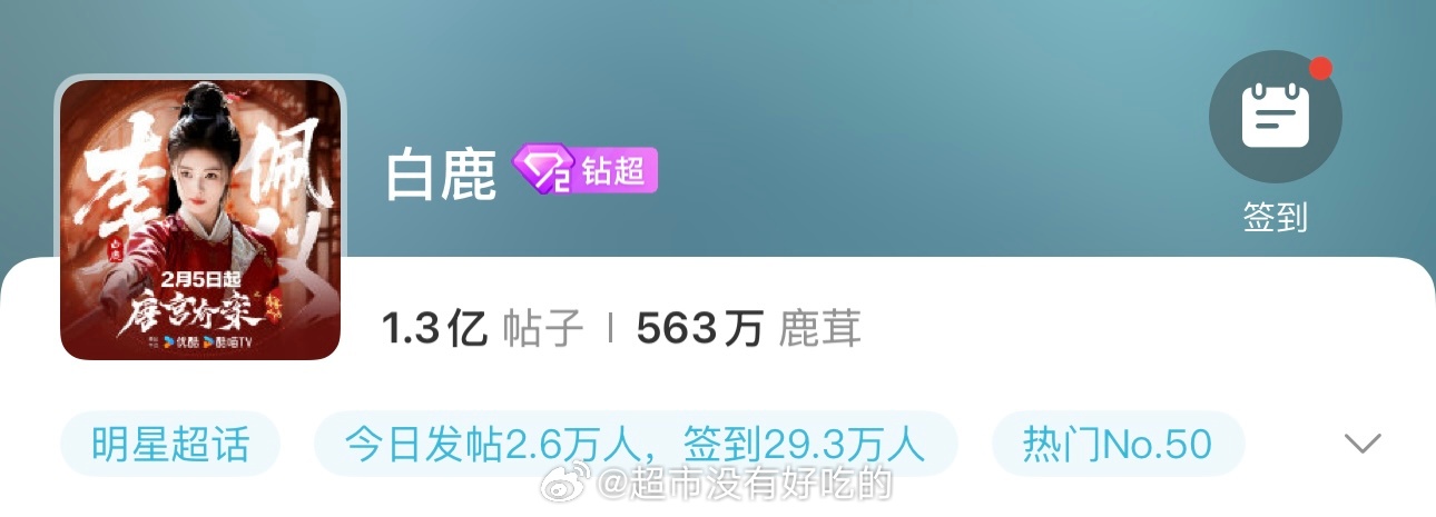 白鹿超话发帖破1.3亿了🎉恭喜流量花粉圈好活跃啊,鹿茸们厉害的纪录下这一刻白鹿