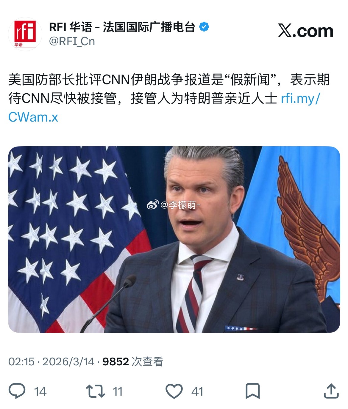 说好的言论自由呢??小川和美国国防部部长不满意CNN最近报道的新闻,川宝表示要换个人接管CNN