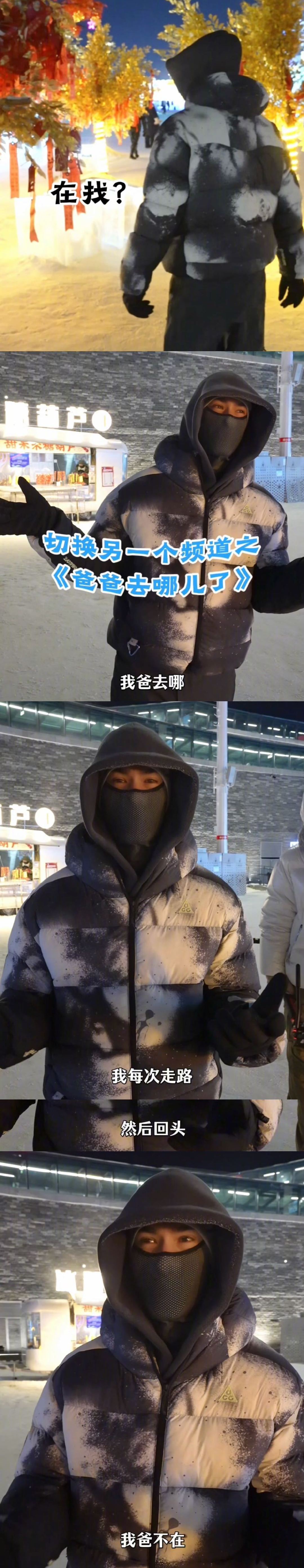 米卡说自己像爸爸的爸爸 米卡在冰雪大世界找爸爸找得都快成习惯了,老米倒是玩得挺嗨,举着手机拍这儿拍那儿,根本不知道自己走丢了。