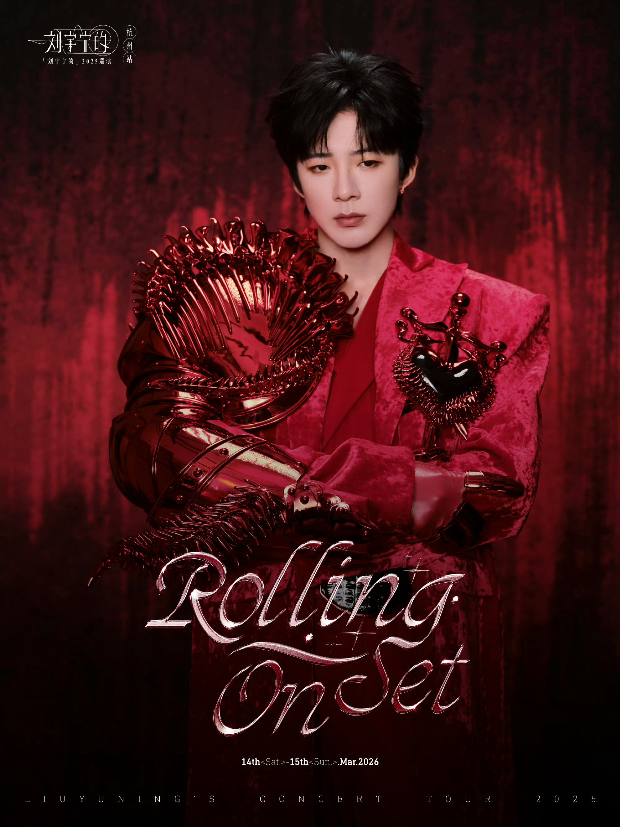 刘宇宁 今日杭州演唱会造型,开场的赤红战袍,右臂覆盖蜿蜒而上的机械骨骼,该机甲臂采用3D打印工艺制作,兼具金属质感与视觉张力。另外还带来两套高定,来自Yuima Nakazato 2025秋冬高定系列,以及2026春夏最新一季的Germanier高定,或酷飒冷冽、或闪耀复古,视听双重魅力呈现。❤️🔥🪩🏹 刘宇宁演唱会