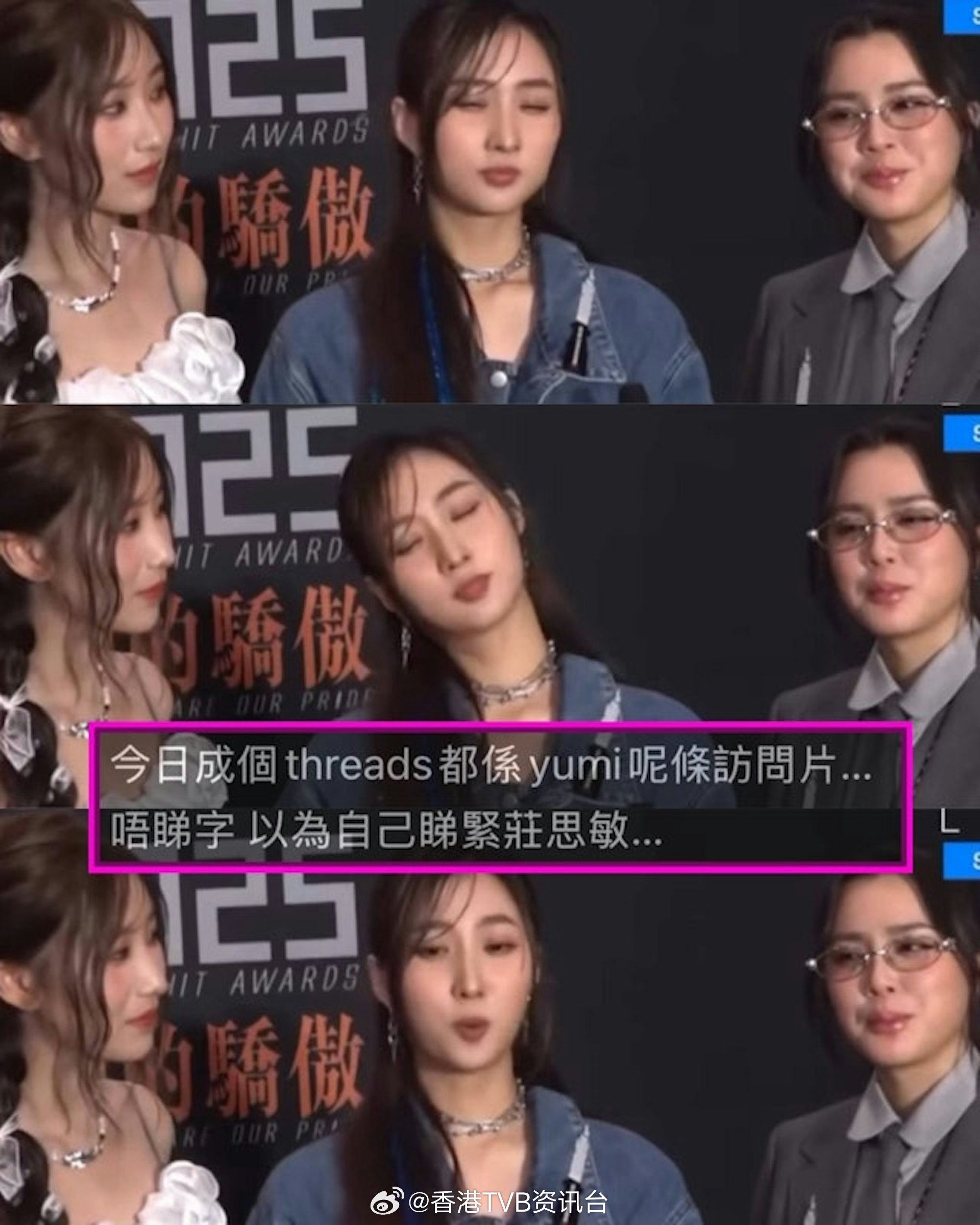 “头摇柔美摆”真相至于在《新城劲爆颁奖典礼2025》中那个“头摇柔美摆”的表情被狠批态度“轻佻”、“嚣张”。Yumi解释那是因为内心极度混乱和很紧张:“我有看返,这样的表情的确不好,制造了很多误会,所以这个真是一个很好的课堂,我真不是这样的意思,日后会更留意自己说话的态度同表情管理。其实每次做访问,我都会在自己的内心世界想很多怎样去表达,但可能我说话真的不厉害,表达得不好,一嚿一嚿、跳来跳去,这样是我的缺点。我身边的人都说‘你不会这样做的’,但我那一刻真是崩溃的。”