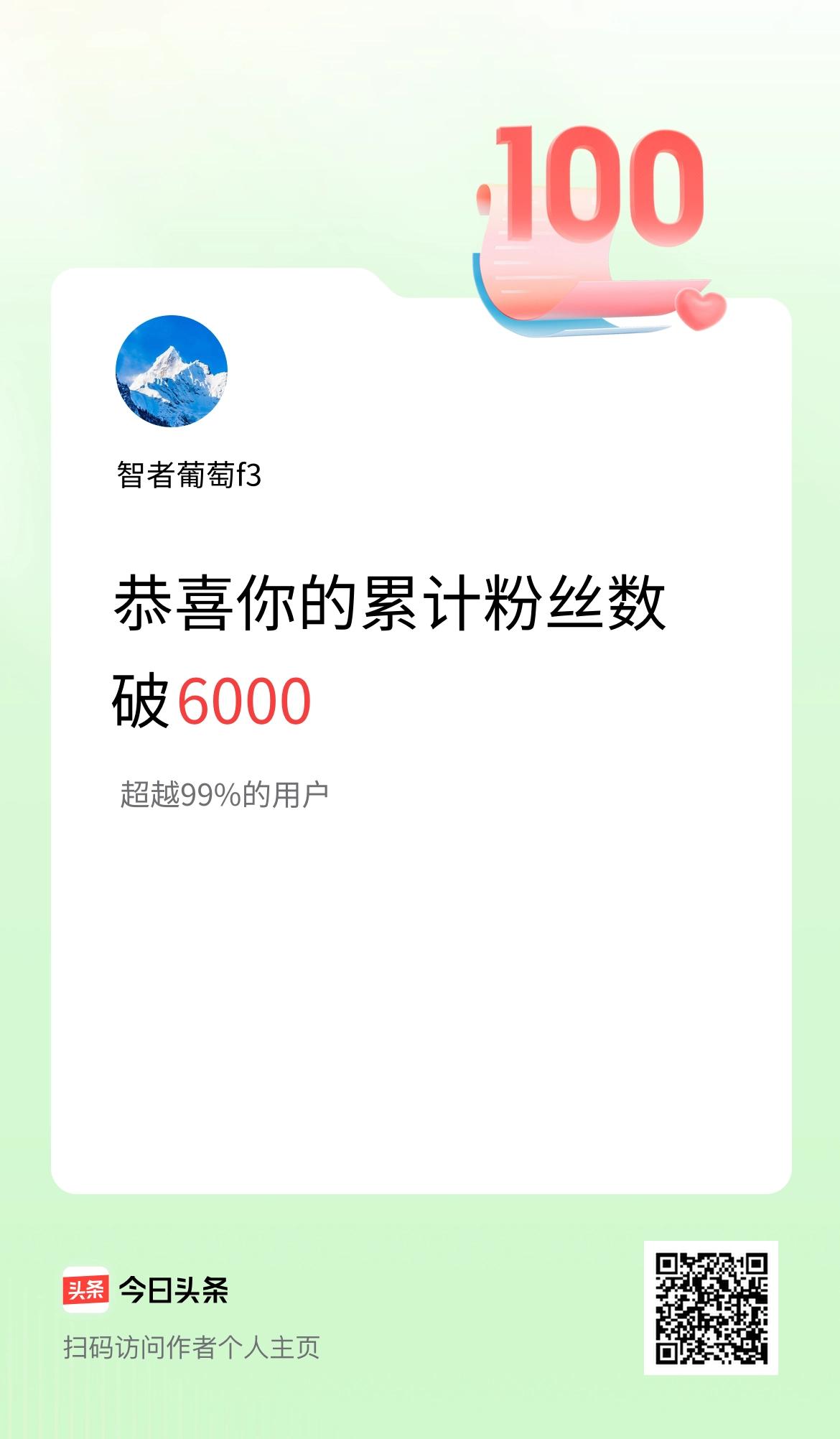 我在头条累计粉丝数破6000啦!