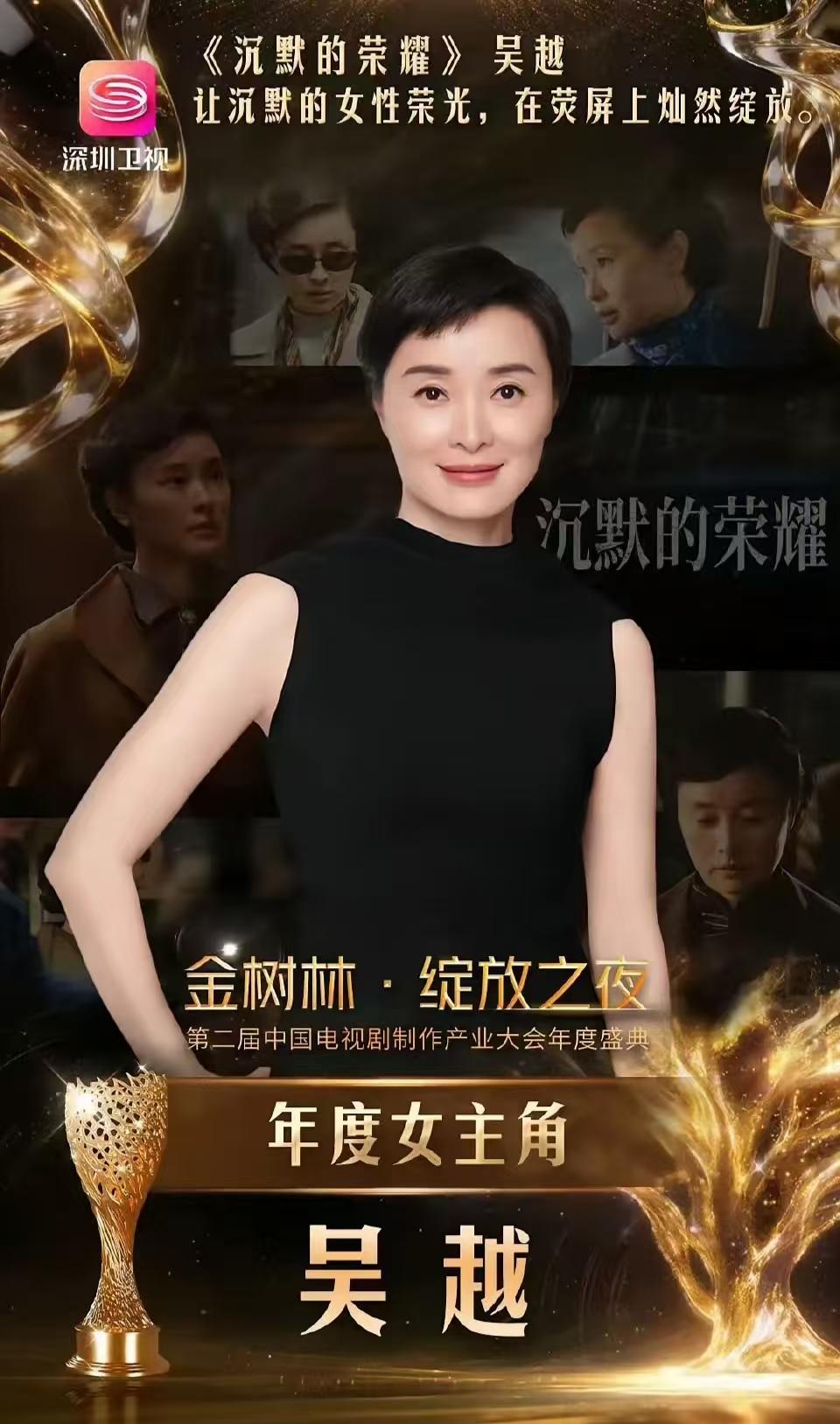 吴越视后,凭什么? 3月13日晚,金树林·绽放之夜,她凭《沉默的荣耀》朱枫一角,拿下年度女主角。 这一票,是行业大佬一票一票投出来的。击败的对手是杨紫、孙俪、杨幂、赵露思——全是当红顶流,全是热搜常客。但她拿了全票认可。 《沉默的荣耀》里,她演革命烈士朱枫。没有大开大合的爆发戏,全靠眼神和微表情。审讯室那场戏,她低着头整理衣襟,抬头时眼里全是故事。观众说:她往那一站,那个年代就回来了。 这不是吴越第一次拿视后。《县委大院》之后,白玉兰、品质盛典、金树林,她一座一座往家搬。53岁,不炒作、不上综艺、不卖人设,就靠一部部作品硬扛。 当晚《沉默的荣耀》横扫6项大奖,包括年度剧集、年度男主角。她上台领奖时说:“这份荣誉不属于我一个人,属于剧组所有台前幕后的创造者。” 一句话,把光打在所有人身上。 有人说她运气好,总碰上好剧本。但圈内人都知道——是她把每一个角色都演成了剧本的上限。 流量会过期,热搜会降温,但吴越这样的演员,永远有戏演。