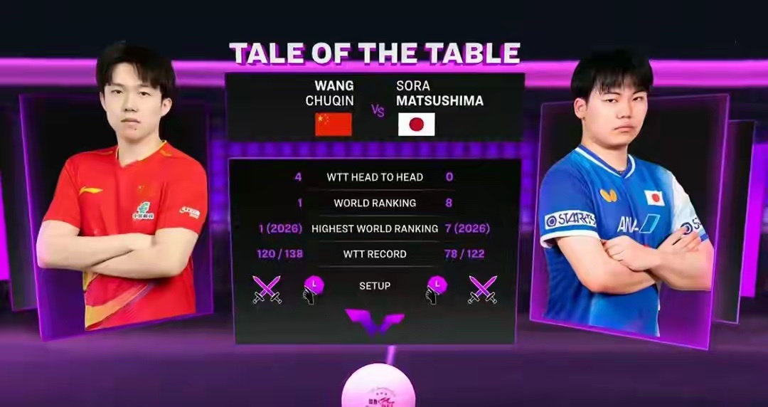 在2026WTT重庆冠军赛男单1/4决赛的焦点对决中,国乒主力王楚钦与日本新星松岛辉空展开六局鏖战,最终以2比4的比分惜败,遗憾止步八强,无缘本次赛事的男单四强。