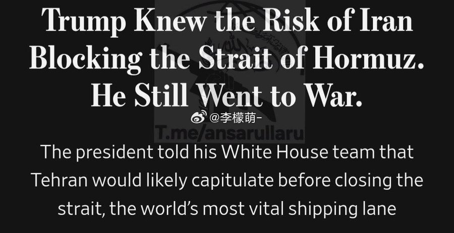 《华尔街日报》:在战争开始之前,特朗普总统告诉他的团队,他相信伊朗很可能会在霍尔木兹海峡被关闭之前投降,即使德黑兰试图阻止,美国军队也能够处理这种情况。