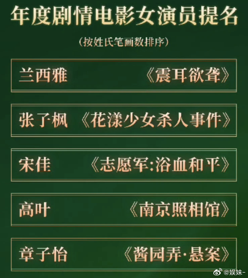 生命树白玉兰和金鹰肯定至少能拿一个,白玉兰去年宋佳就是山花烂漫拿的,从题材上来说