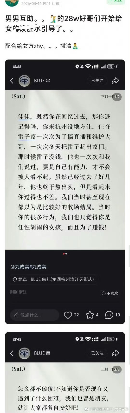 BLUE串喊话九成美别现在咋办了,一会儿把兄弟一起告了