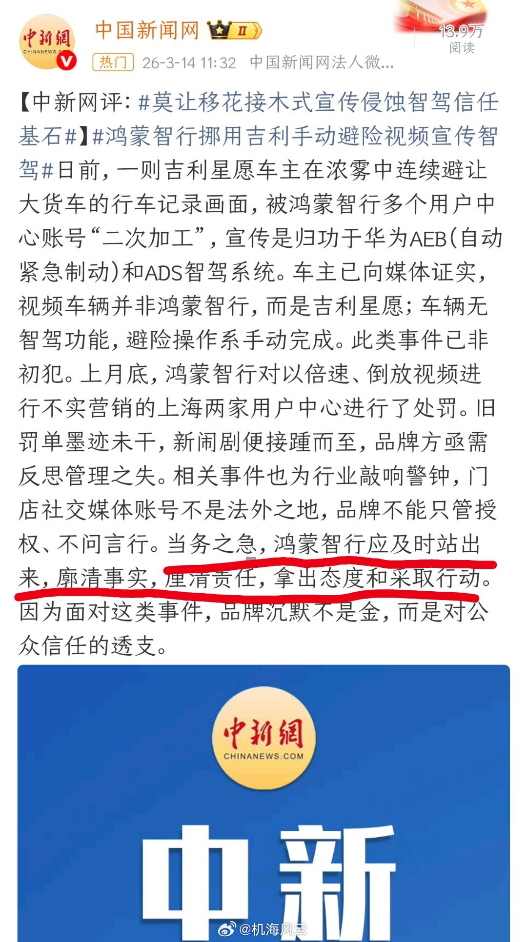 鸿蒙智行挪用吉利素材宣传智驾微博真是大胆啊,怎么这种新闻居然上热搜了,以前我记得