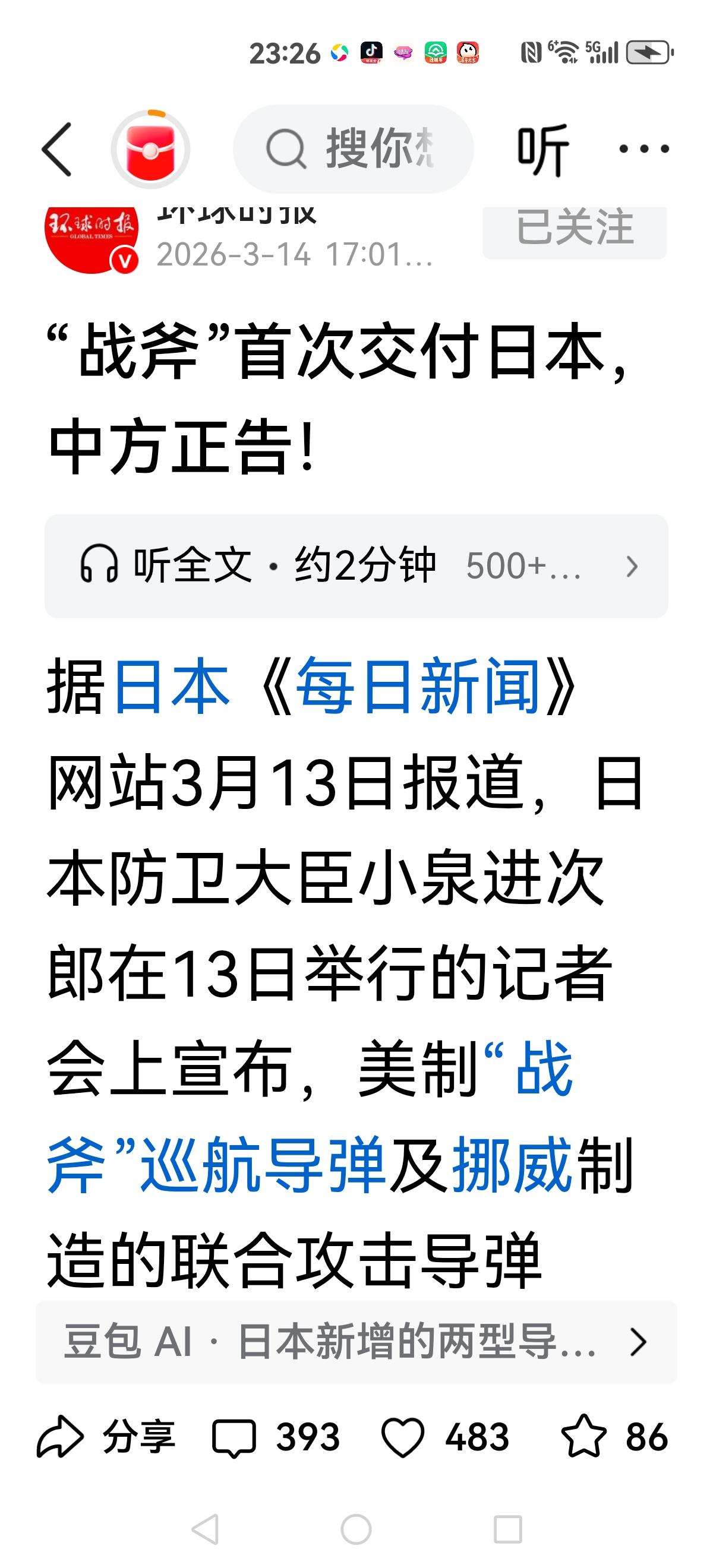 【沈逸,这是弹药不够吗?】 沈逸质疑美国打伊朗,弹药不够。 转眼美国交付战斧导弹给日本。