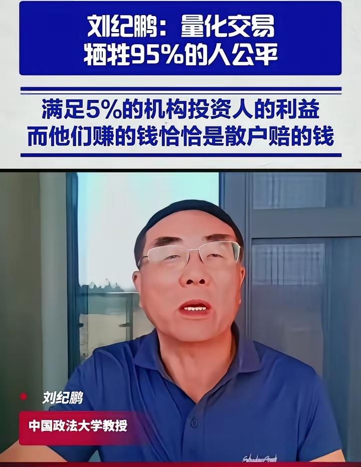 还是刘教授敢说,建议给散户实行t+0的交易方式,机构则改成t+1的交易模式,可以压制机构利用制度的优势进行市场的收割,量化交易是机构的专用工具!反而是散户基本上没有这样的优势,量化交易是机构的特权!中国的资本市场散户居多,你要发几个?基本上是赚钱的,那么在这个市场机构赚钱呢,那必然就是散户在亏钱,中中国这个资本市场很多上市公司是没有实现大额分红的,甚至很多公司常年不分红!没有市场分红,二级市场这些投资者基本上就没有新增的盈利资金!很多时候就是机构赚了散户的钱!所以在A股市场能分红的上市公司并不多,甚至大手笔的分红上市公司也不是很多,以前基本上是很多公司很多年都没有分过一毛钱,就是铁公鸡!导致了A股市场的畸形交易!就是镰刀对镰刀割韭菜,投资者想赚钱就得有人亏钱,就是把别人口袋里的钱拿到自己口袋里面,因为A股市场很多上市公司不产生利益,分享给投资者!投资者想赚钱,只能股价上涨!
