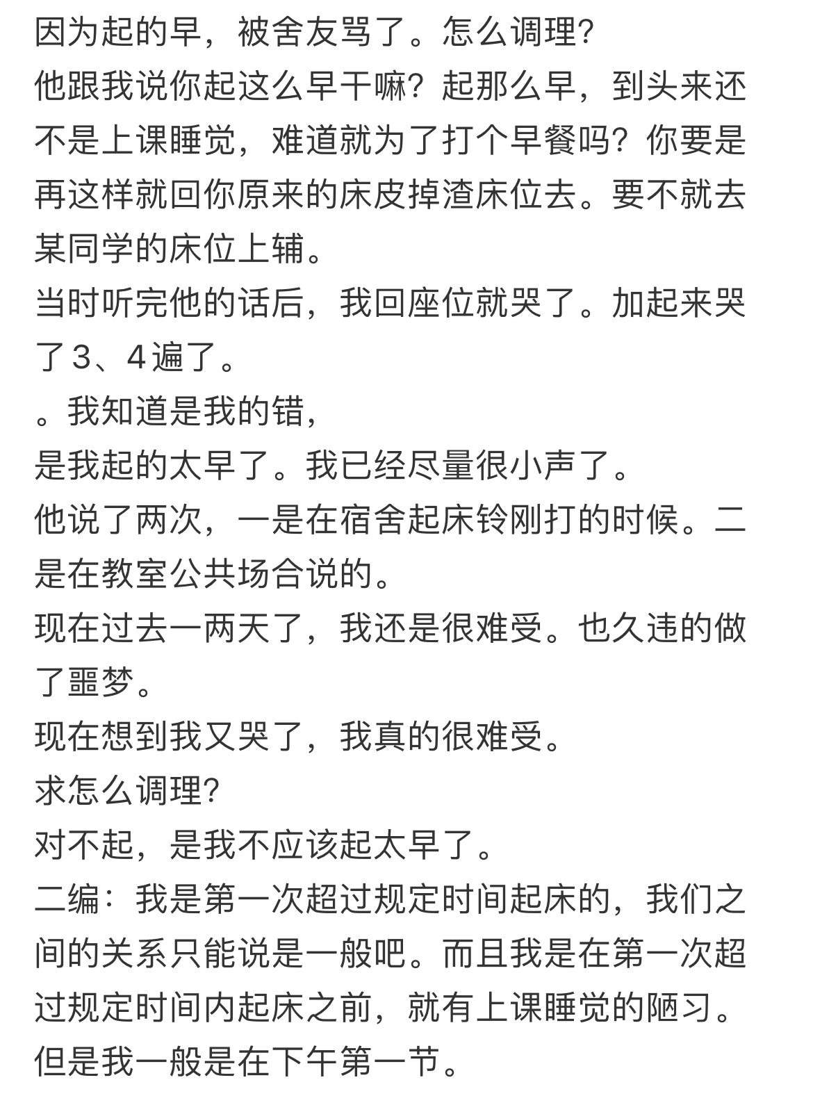 因为起的早,被舍友骂了。怎么调理?