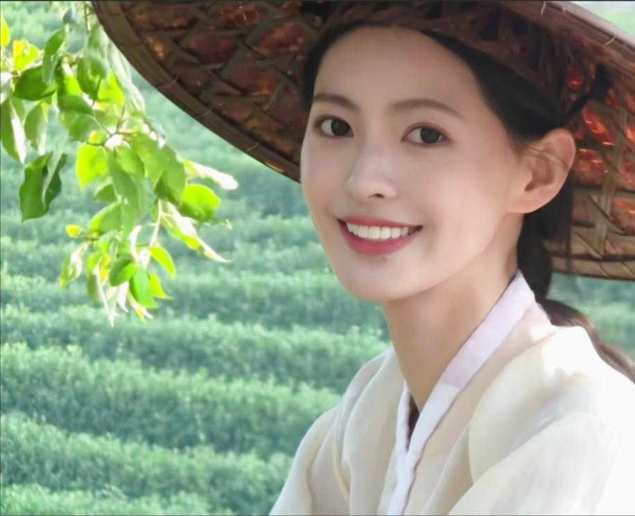 田园少女,微笑如花,绿意盎然,自然之美。