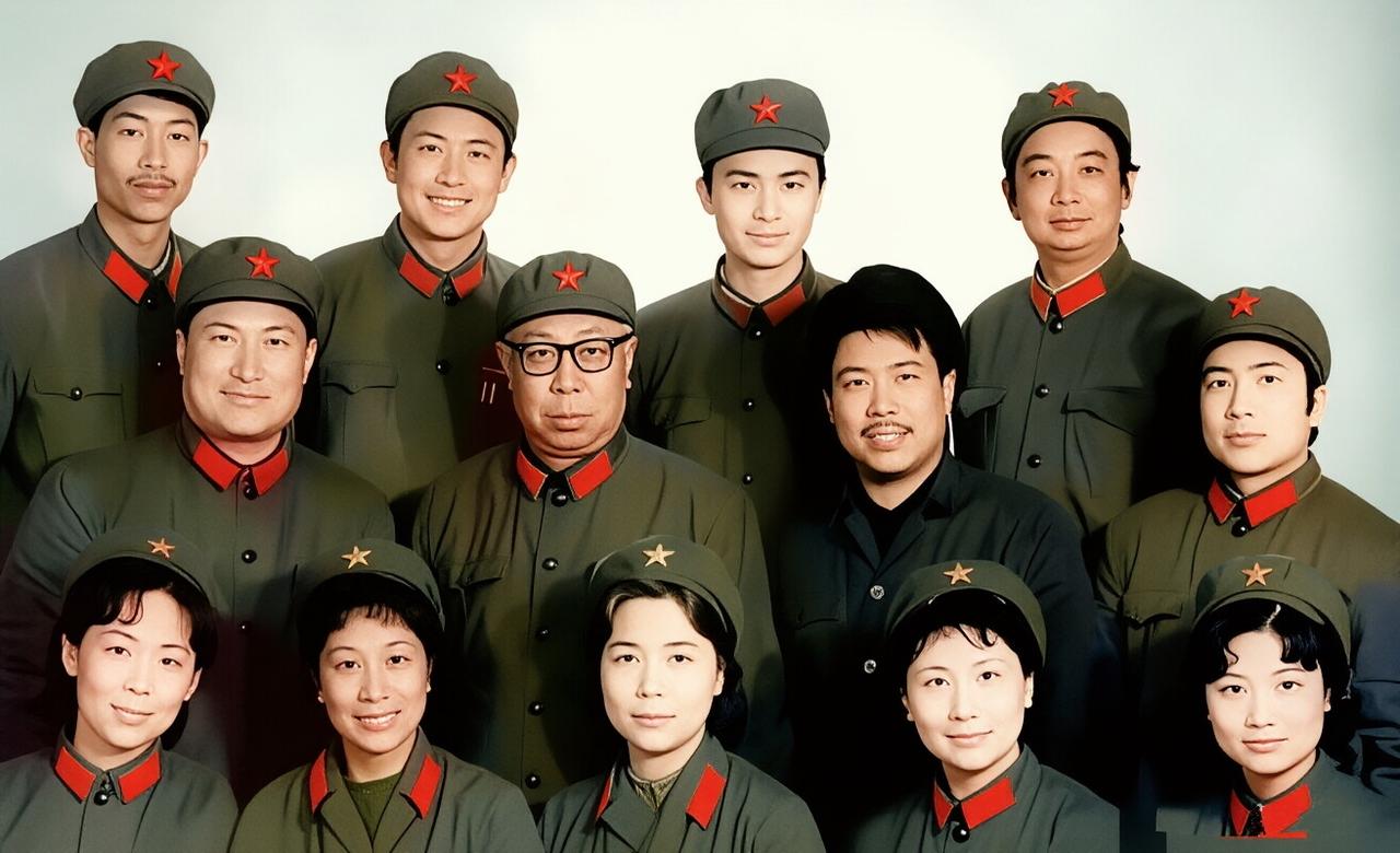 一众明星身着军装留影:我一眼就认出了戴着眼镜的刘江与前排C位目光沉和的田华,最后一排我认出了帅气的祝新运、李世玺及最右侧的黄焕光。 几经识别,我认出了第二排的刘龙与刘继忠;还有第一排左一的刘尚娴和右二的袁霞,想知道那位唯一没穿军装的是谁?右一最好看的女星又是谁?